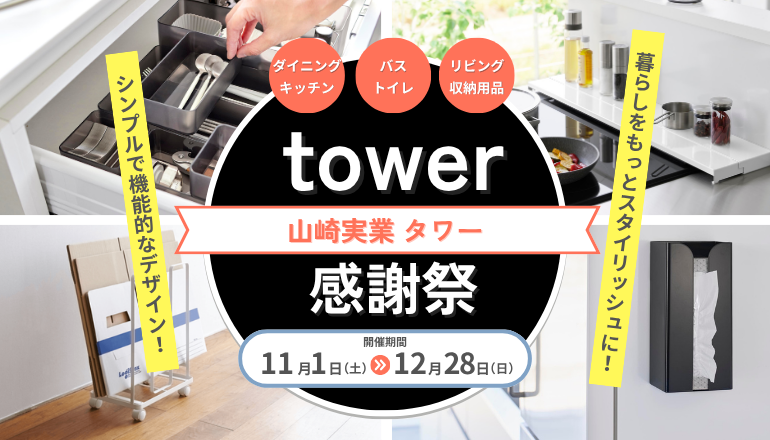 | 山崎実業 タワー(tower) シンプルで機能的なデザインが人気の「山崎実業 tower シリーズ」。 日々の”ちょっとした不便”をスマートに解決してくれるアイテムが勢ぞろい!キッチン、リビング、洗面所まで、暮らしのあらゆる場所をスッキリ整えてくれます。 | ||