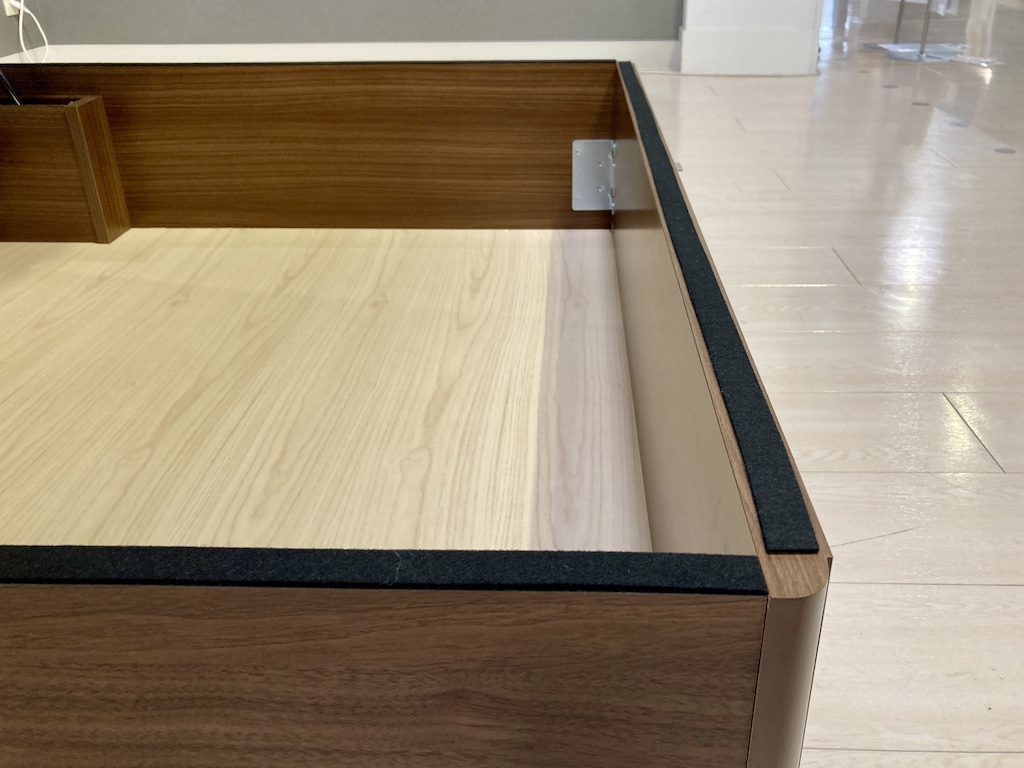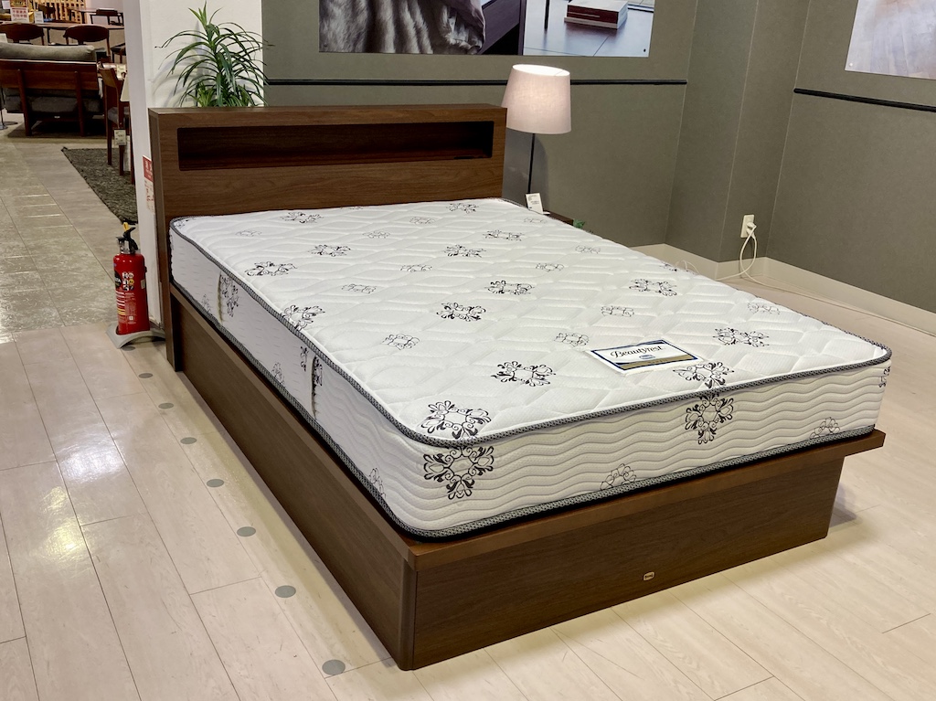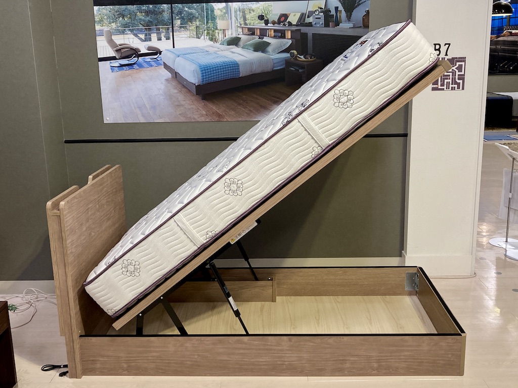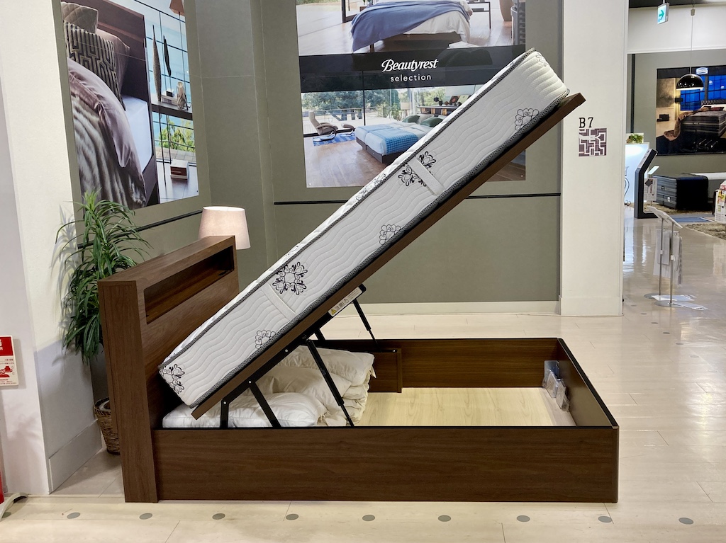 世界のシモンズベッド。収納部の上げ下げも流石の安定感です。