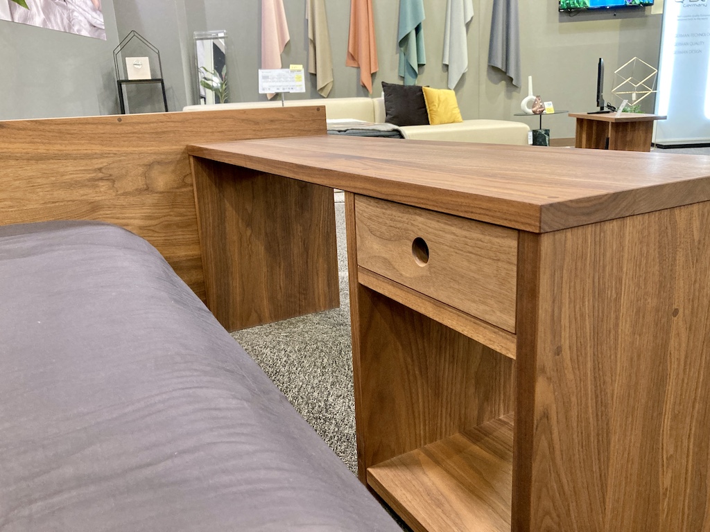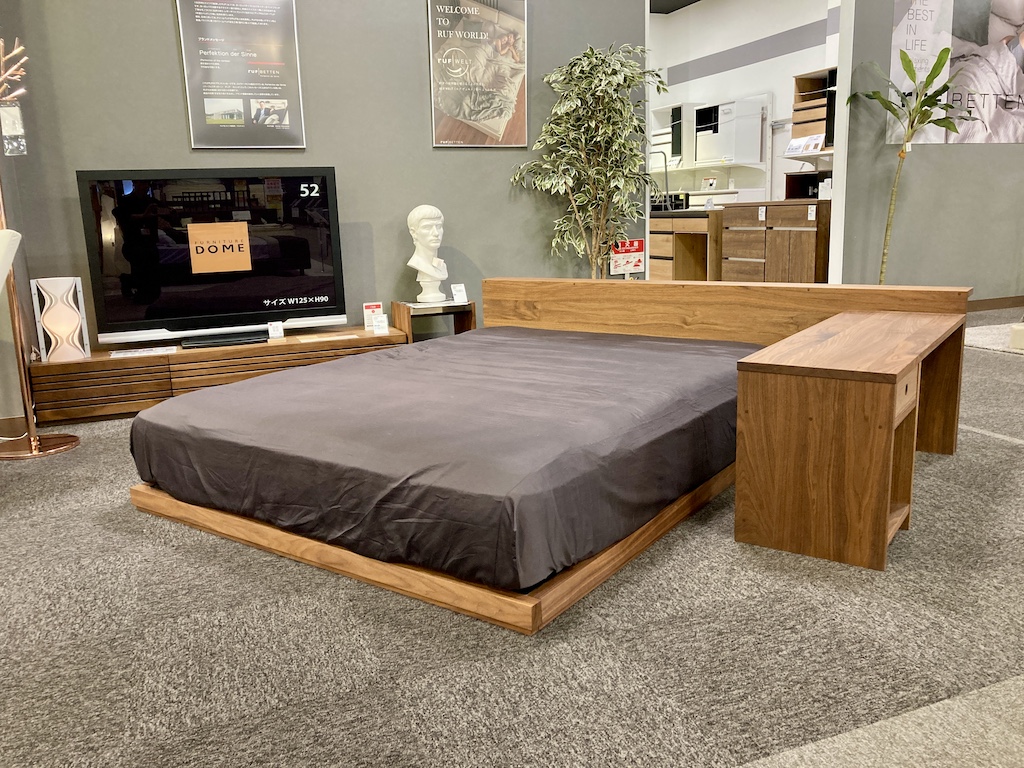 「マスターウォール」ブランドのベッドシリーズ。デスク、寝装品とあわせ上質なベッドルームの完成です。
