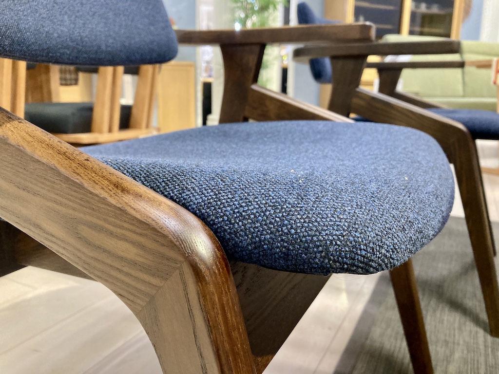 タモ材突板天板。座り心地が良くコストパフォーマンスに優れたダイニングセットです。