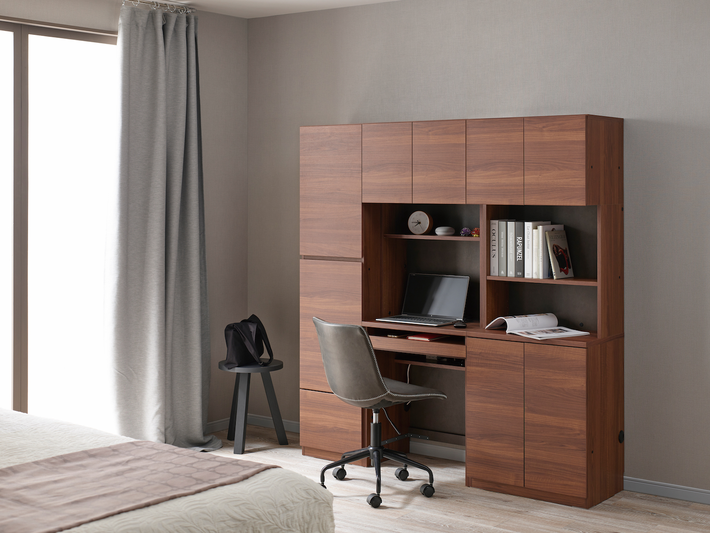 | すっきりシンプルと収納力確保のワークスペースパターン |
