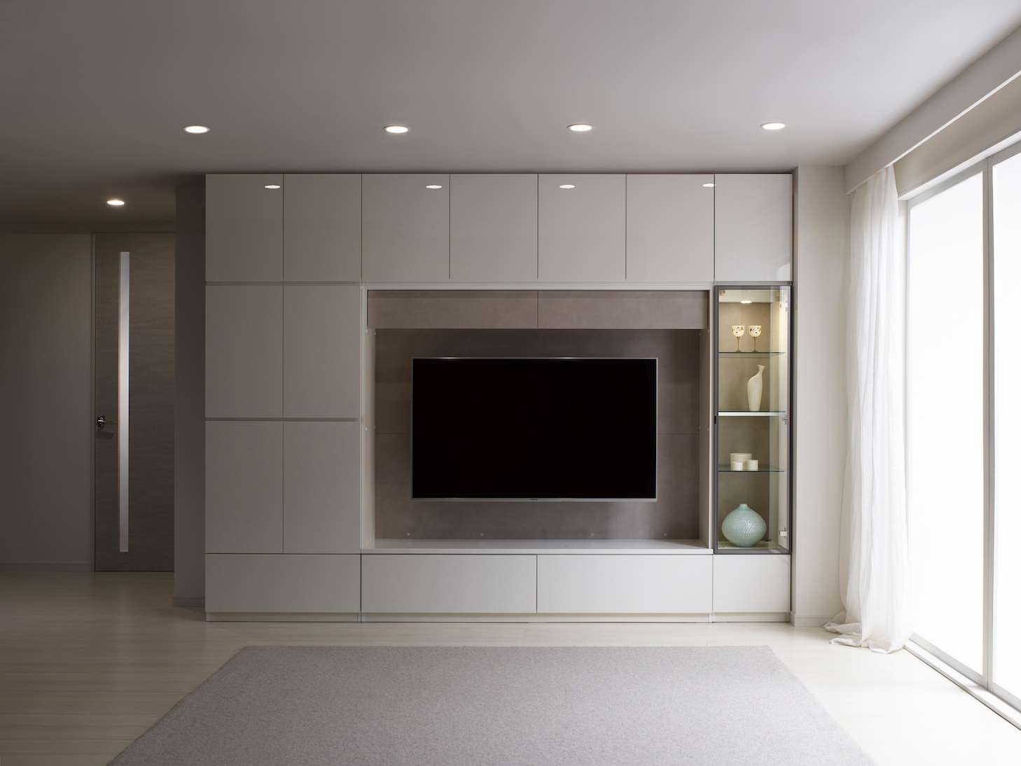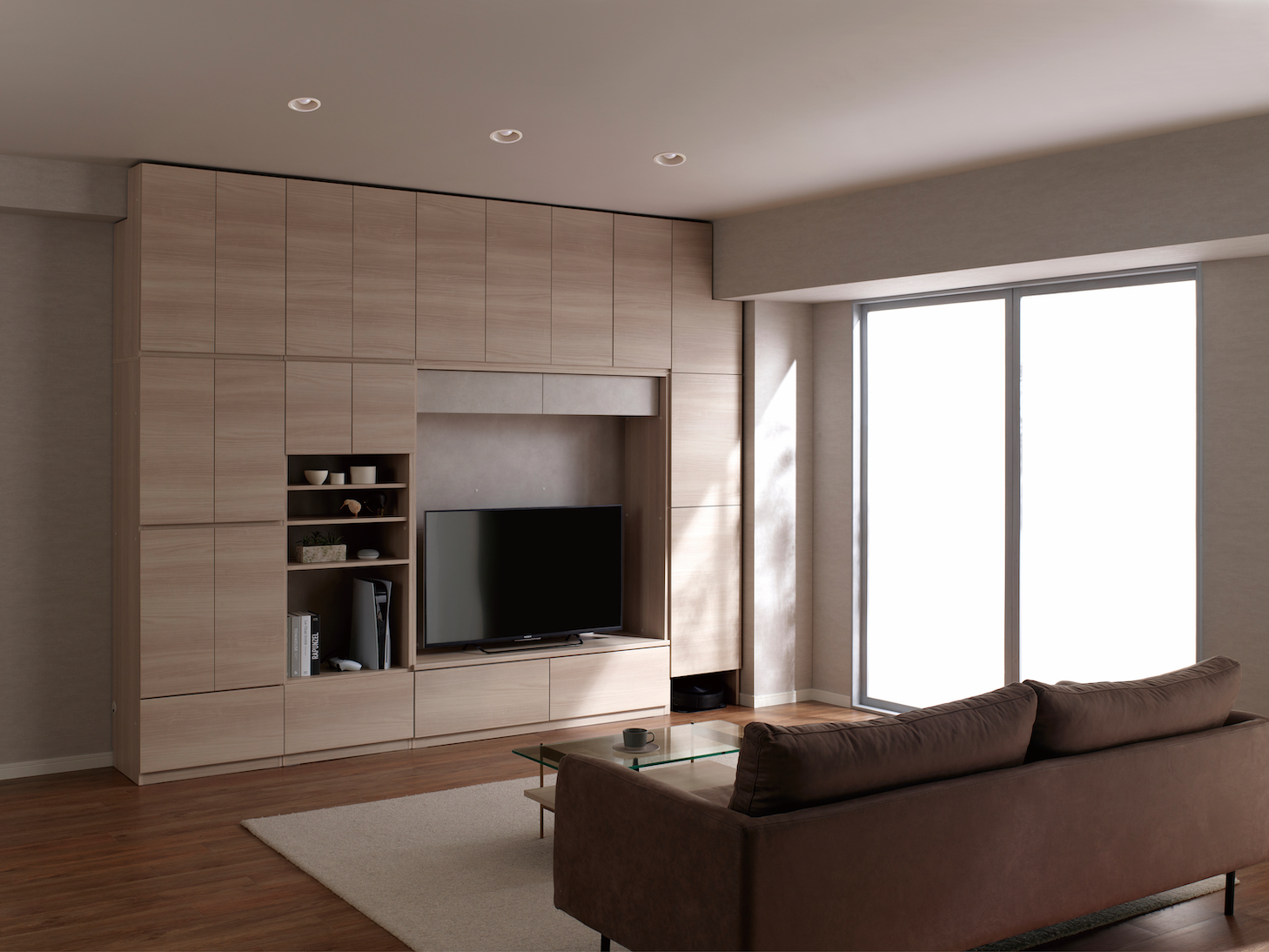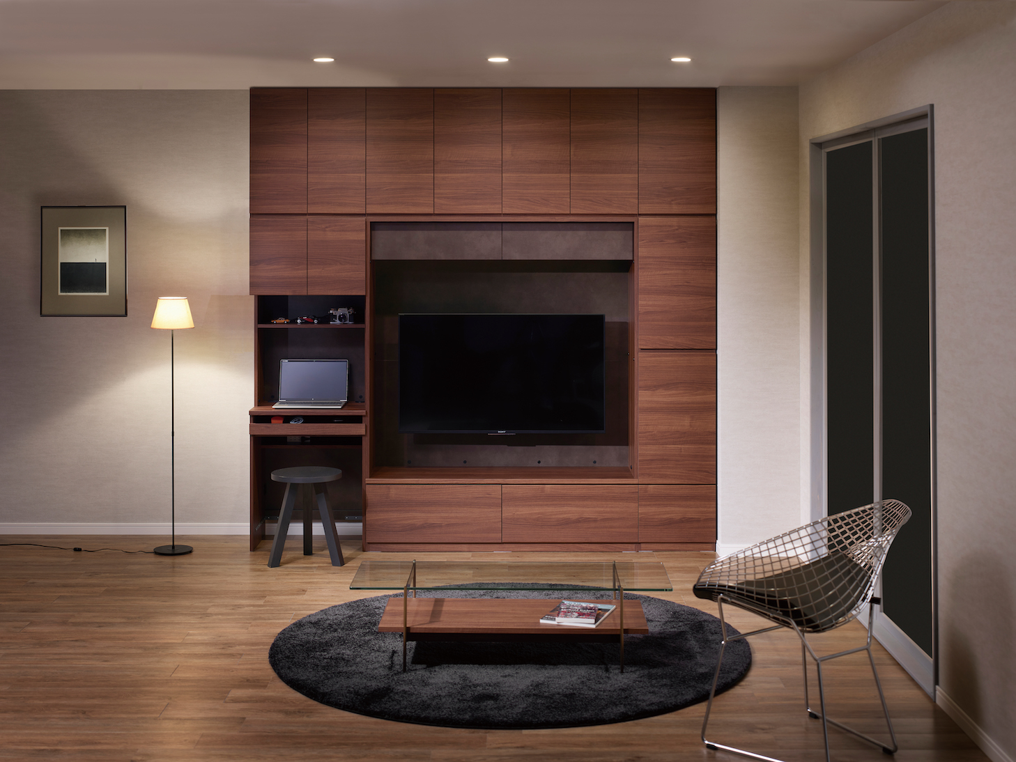 配線用のコンセント位置の背面または側板穴あけ、壁掛けTV用金具に取付け可能TVの条件、天井梁カット対応採寸方法など、細部にわたりお客様のニーズに応えるメニューがございます。ファニチャードームスタッフがわかりやすくご案内差し上げます。