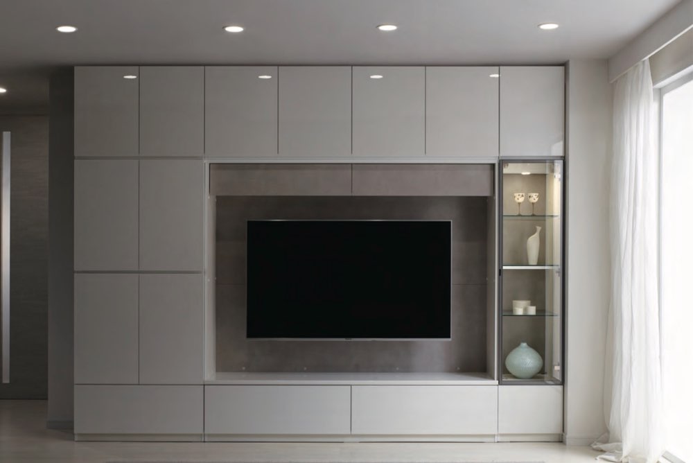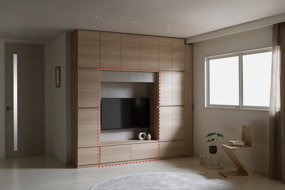 配線用のコンセント位置の背面または側板穴あけ、壁掛けTV用金具に取付け可能TVの条件、天井梁カット対応採寸方法など、細部にわたりお客様のニーズに応えるメニューがございます。ファニチャードームスタッフがわかりやすくご案内差し上げます。