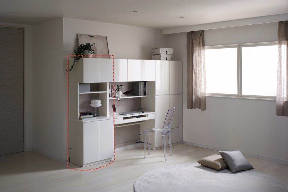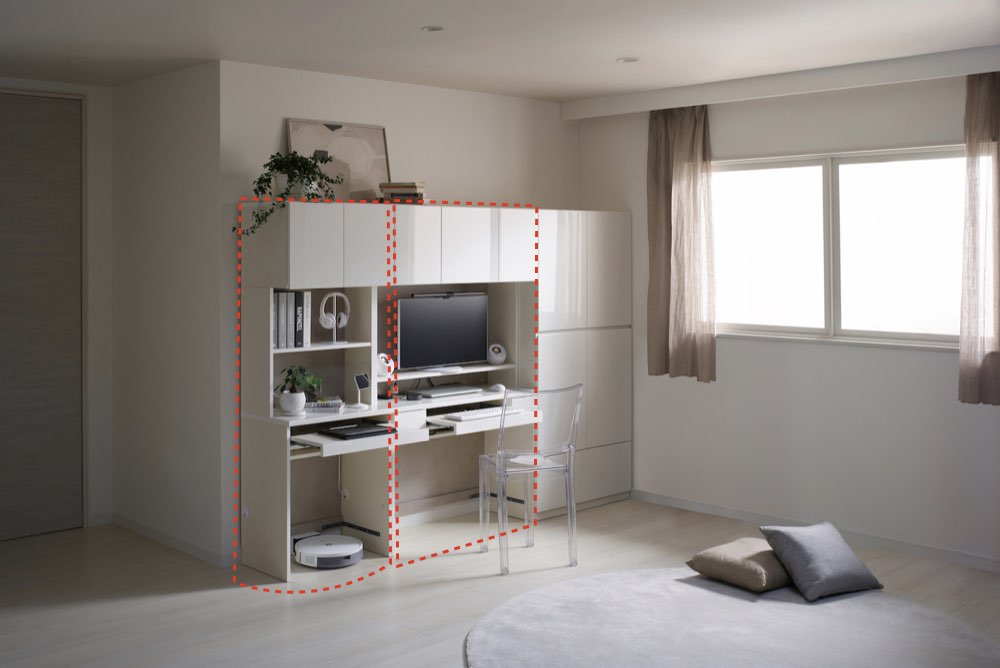 | すっきりシンプルと収納力確保のワークスペースパターン |