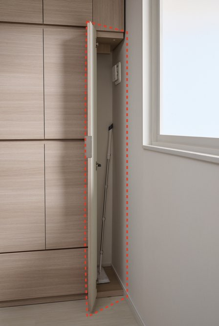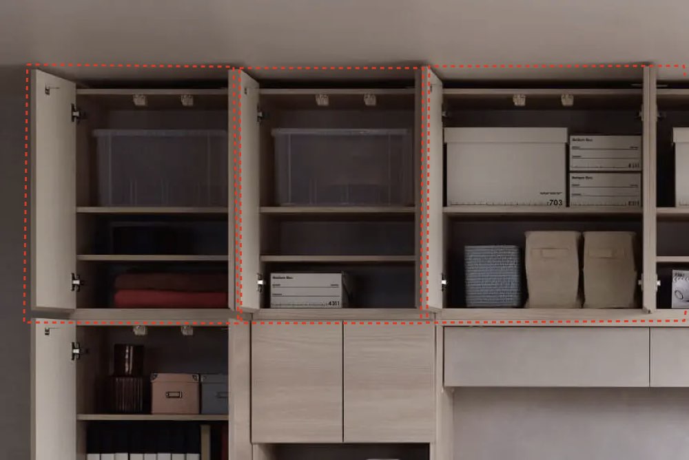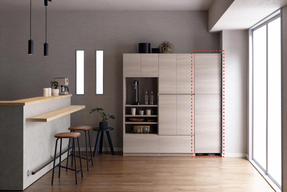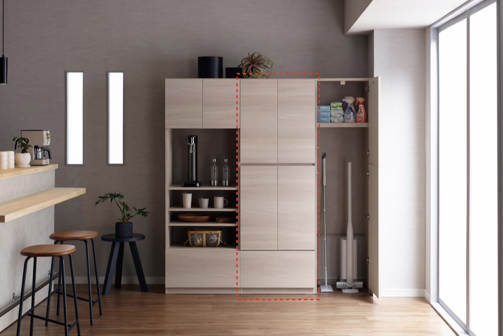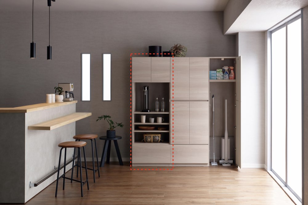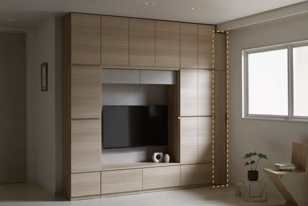 幅や高さを1mm単位で調整できるため、天井や壁の梁などの建築上の制約を避けつつ、部屋の間口いっぱいに収納を設置できます。これにより、既製品では難しい「隙間のない美しい収納」が可能です。