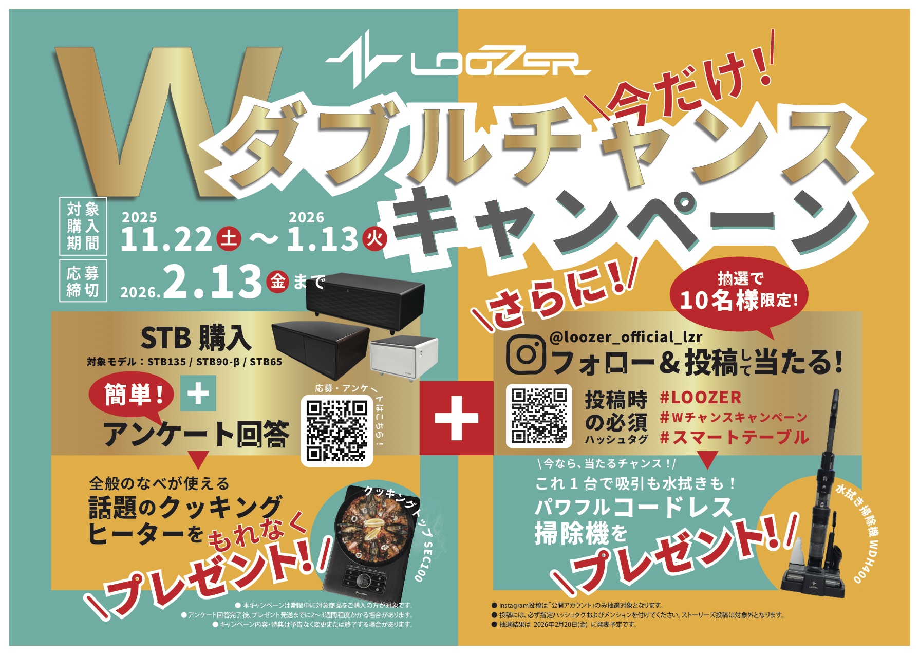 話題の冷蔵庫付きスマートテーブル 「LOOZER(ルーザー)」を期間中にご購入のお客様へ、プレゼントキャンペーンを開催中です!