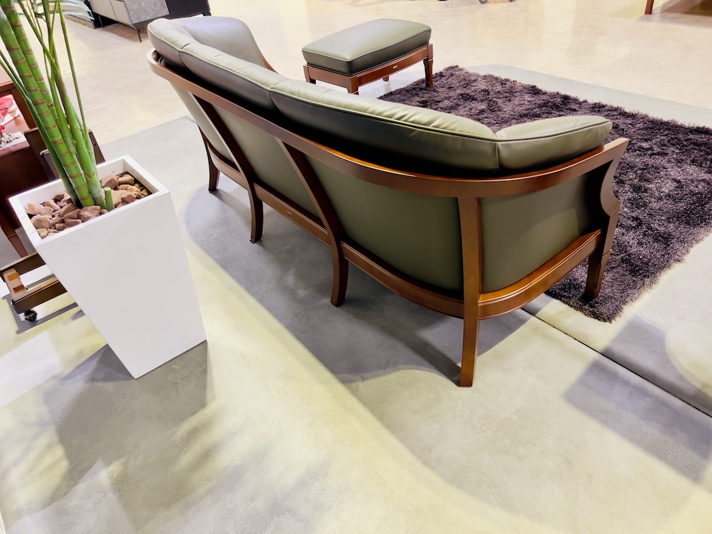 マルニ「地中海シリーズ」。落ち着きのある革張りソファ、スツール付きです。