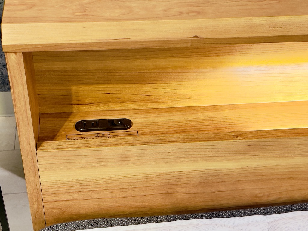 国産のコスパに優れたポケットコイルマットレスです。ベッドヘッド中央部に2口コンセント付き、可愛らしいデザインベッドです。