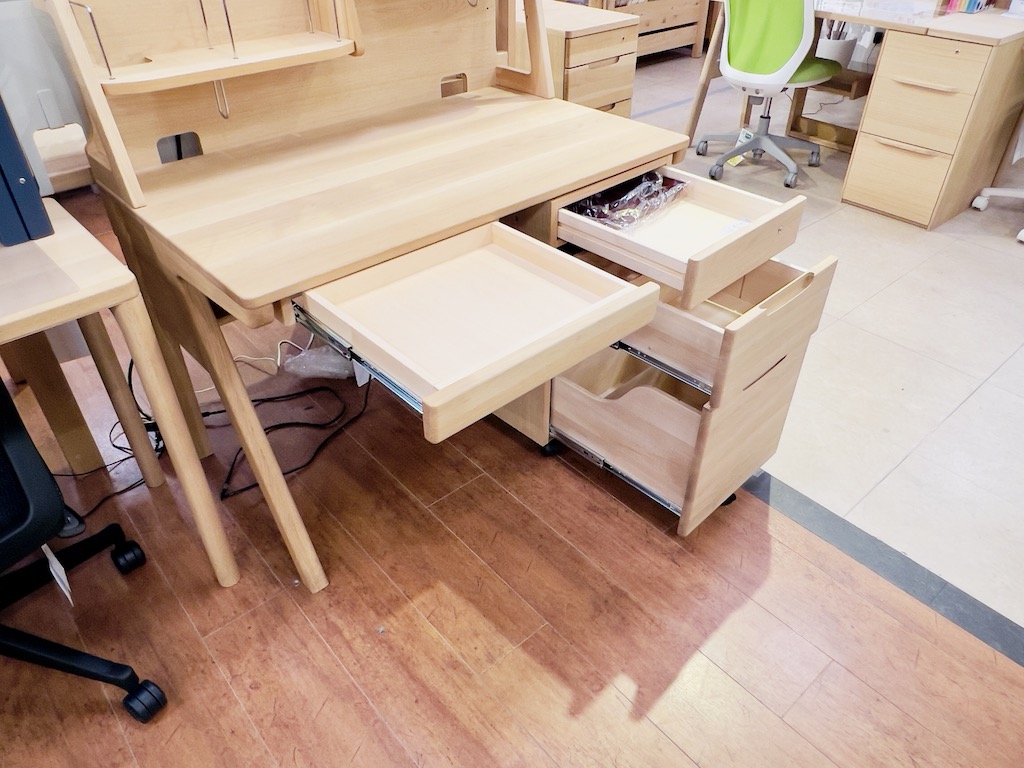 シンプルでナチュラル感あふれる使い勝手のよいデスク「ピュアナチュール」。機能とデザインが融合。お子様の使い勝手を考えた新発想のナチュラルデスク。