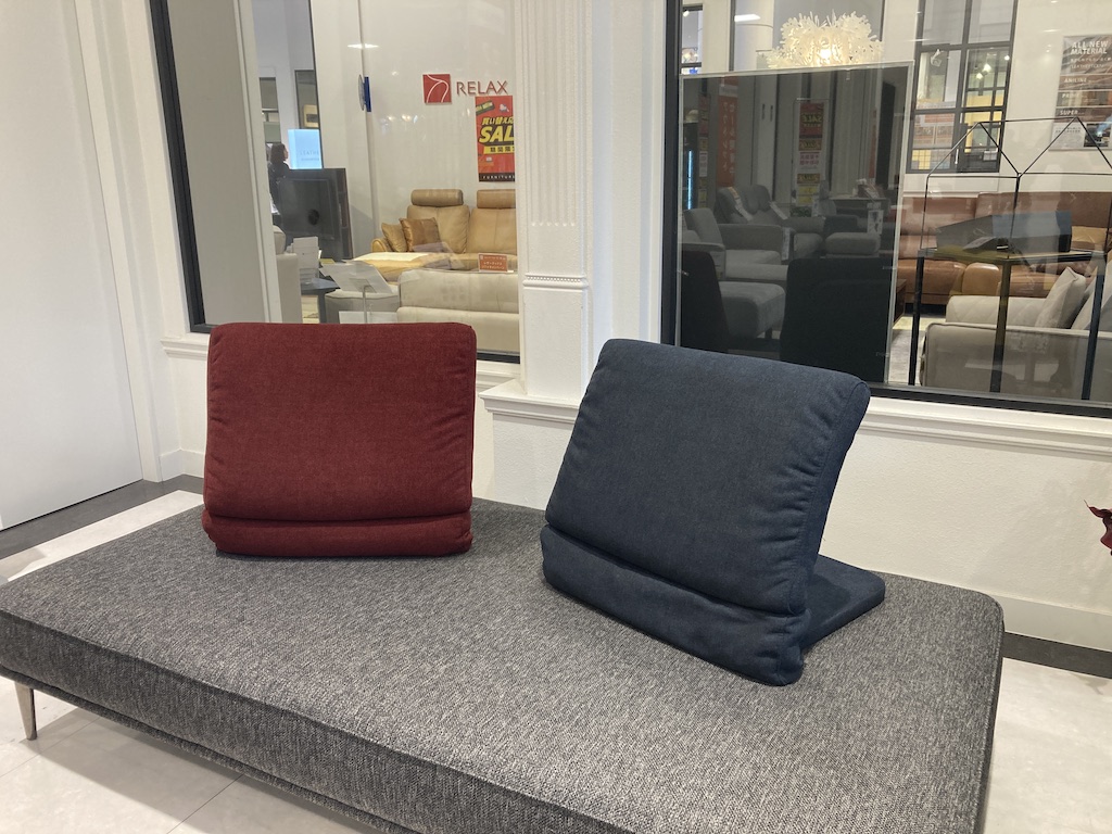 自由を意味する「リベラ」は、シートのスリット部に背ベースを差し込んで多彩な座りが演出できるフレキシブルなソファです。