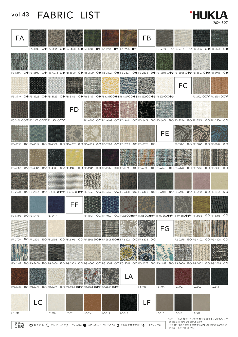 生地は「FAランク」から「LFランク」までの10段階をご用意しています。たとえば、FAランクの価格で、ひとつ上のFBランクの生地をお選びいただけます。実際のご案内としては、「FBランクの生地を FAランクの価格で購入できます」とお伝えする方が分かりやすいですよね。素材感や色味などは、あくまで参考ですので、売場でご確認いただきたいです。