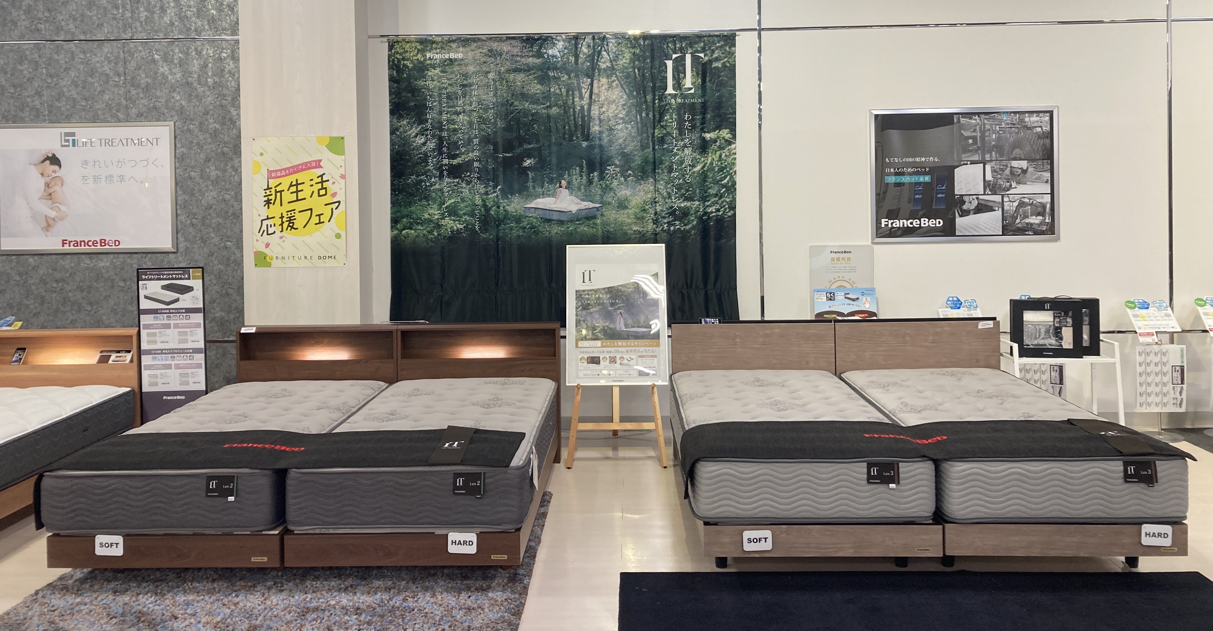 ファニチャードーム では、寝心地、ご予算に合わせて3タイプ(硬さはそれぞれソフト/ハードの2種類)を取り揃えております。