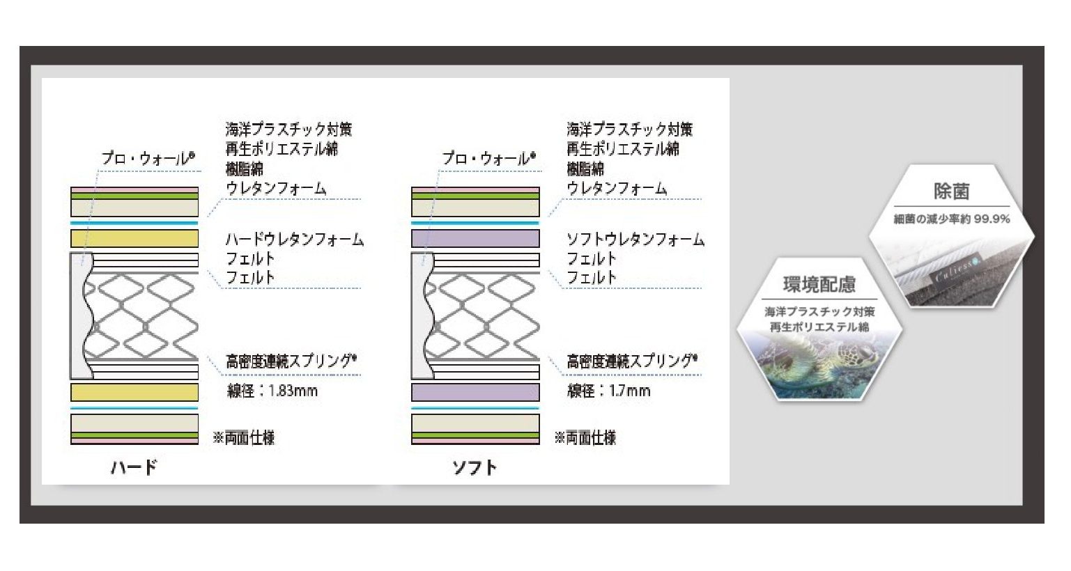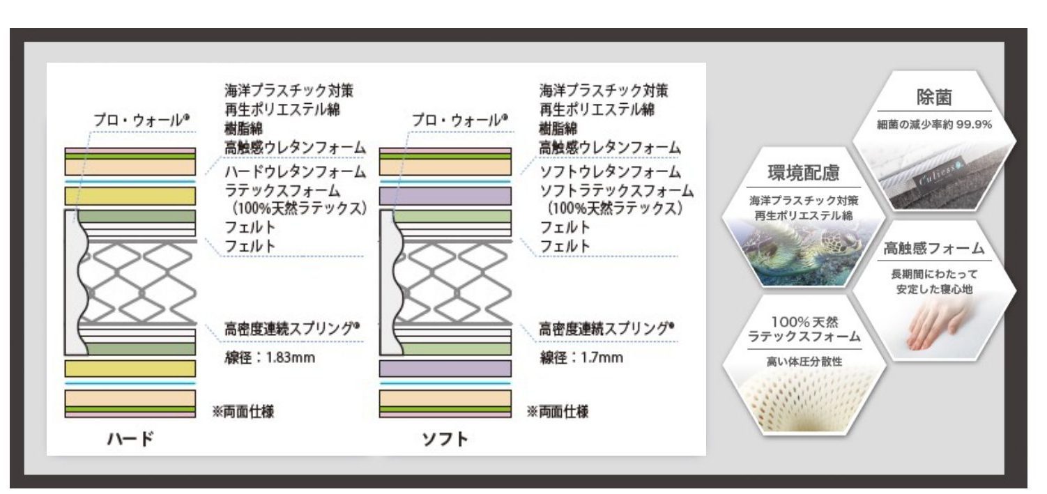 詰め物:高触感ウレタンフォーム使用、ソフトウレタンフォーム1層&ソフトラテックスフォーム1層