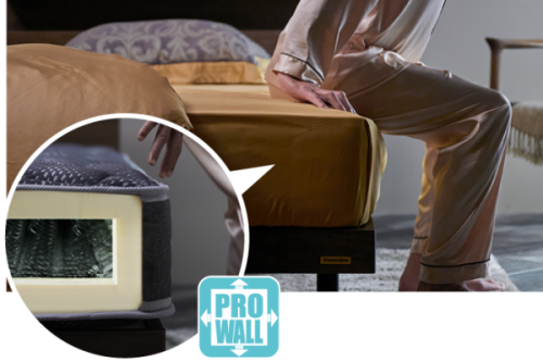 さあ寝る時間だ!!寝るには、ベッドに腰掛けてゴロンとしてカラダを伸ばす、という一連の動作があります。腰痛の方は、この一連の動作=「恐怖」。ちょっとでも動きをミスると「激痛」。プロウォールなら腰掛け時/立ち上がり時の沈み込みがなく安定しており安心。