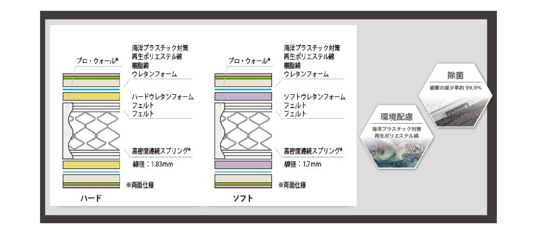 ファニチャードーム では、寝心地、ご予算に合わせて3タイプ(硬さはそれぞれソフト/ハードの2種類)を取り揃えております。
