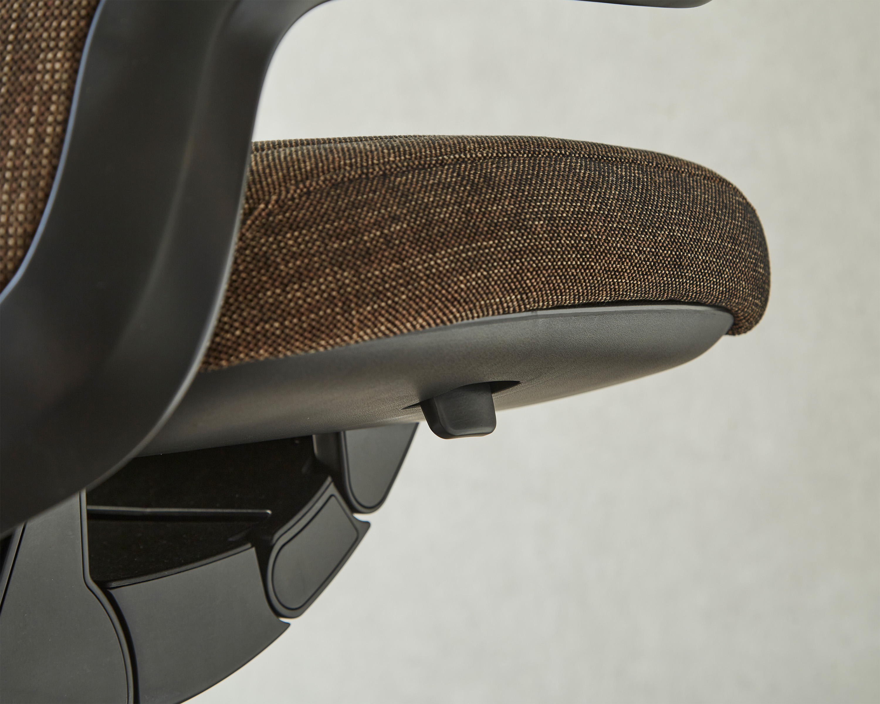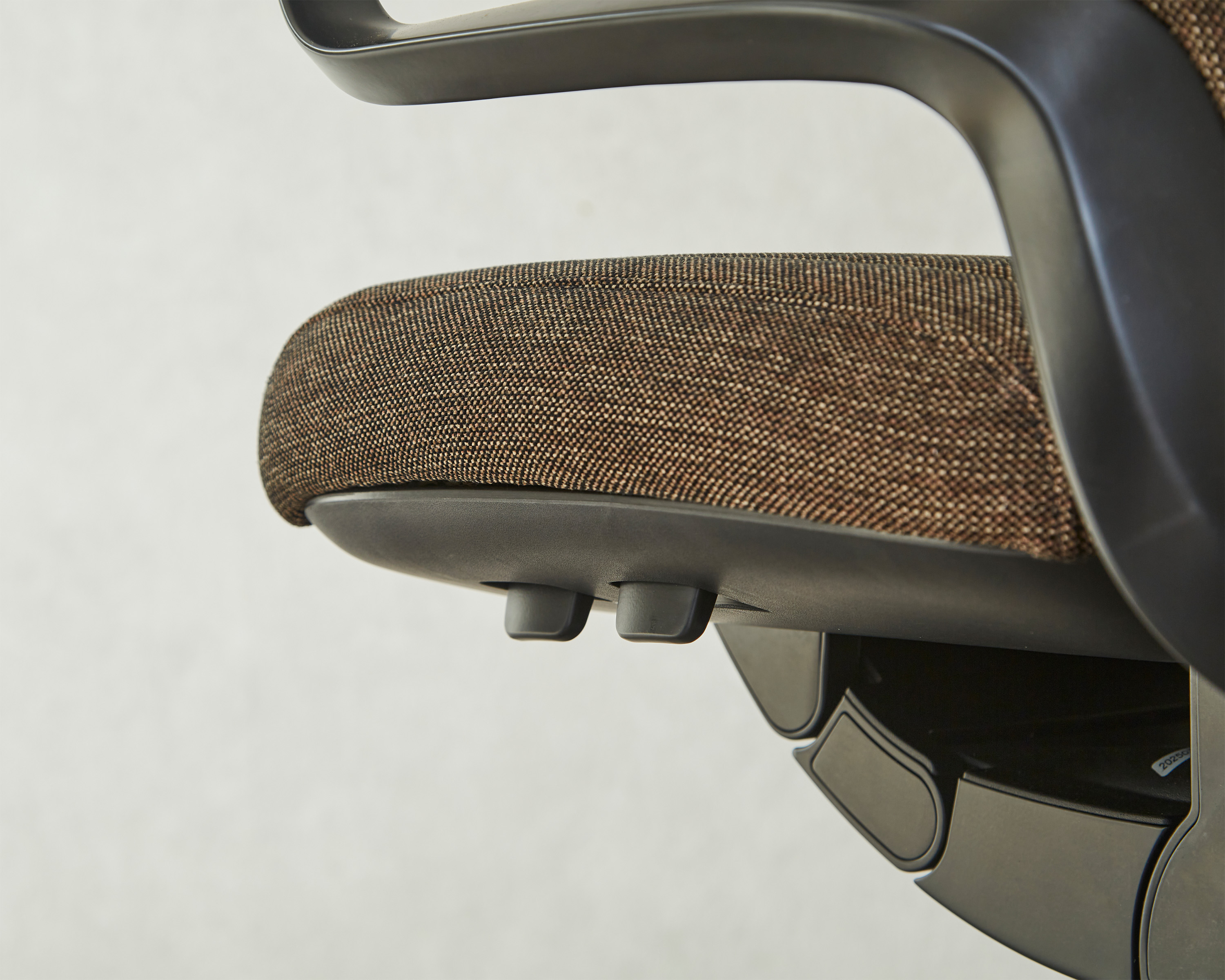 肘部分はループ形状のスチール製の肘で仕上げデザイン性を高めながらサイズはコンパクトに仕上げ、圧迫感を与えやすいオフィスチェアが多い中、インテリアにしっくり自然に調和いたします。