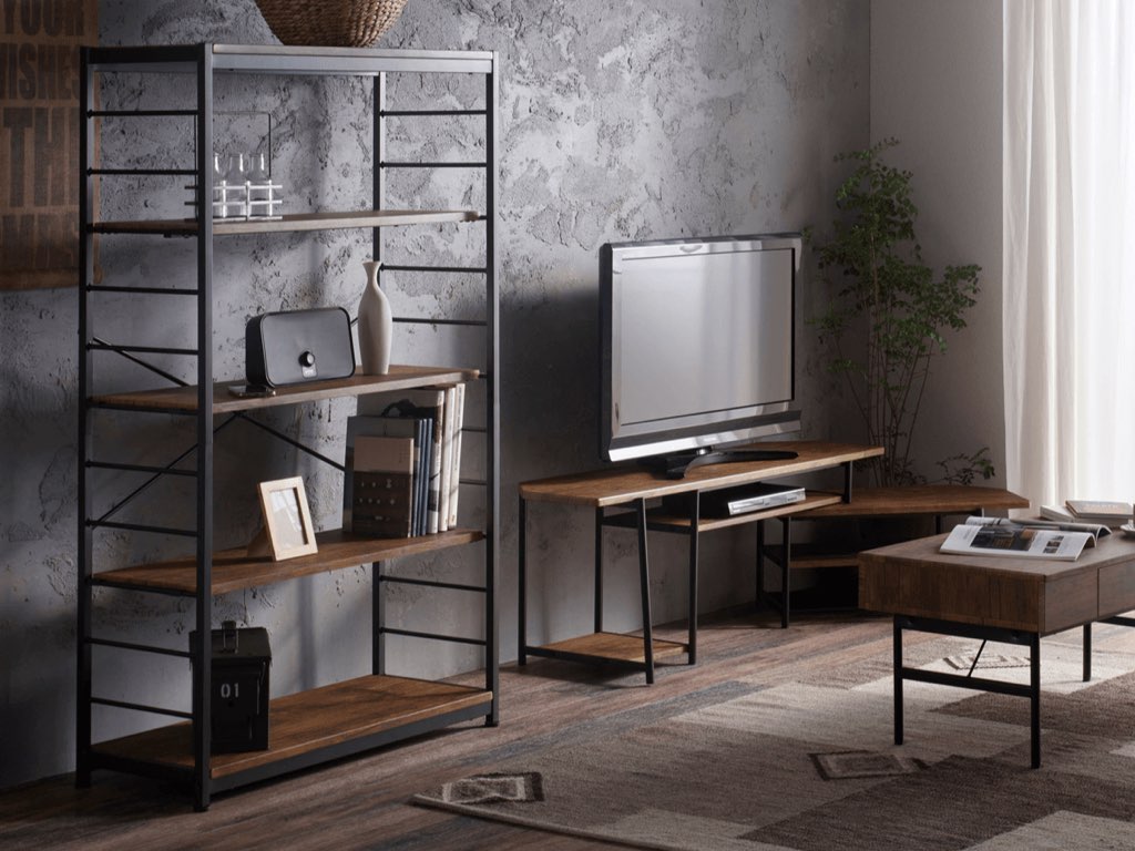 木目×スチールの組み合わせは、ナチュラル系からインダストリアルまで幅広く対応します。