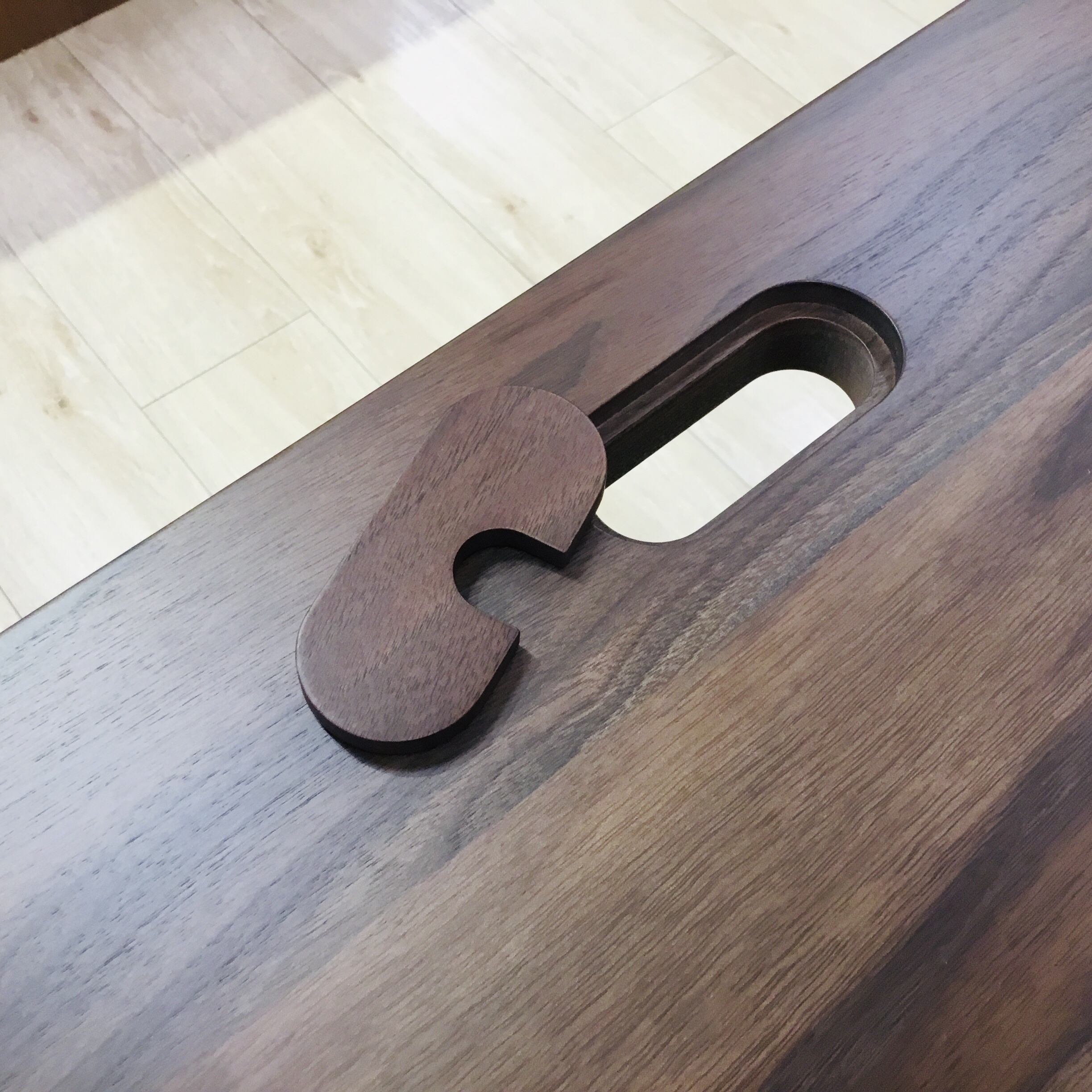 ①材質は、ミズナラ(下の画像)とウォルナット(上の画像)から選択。