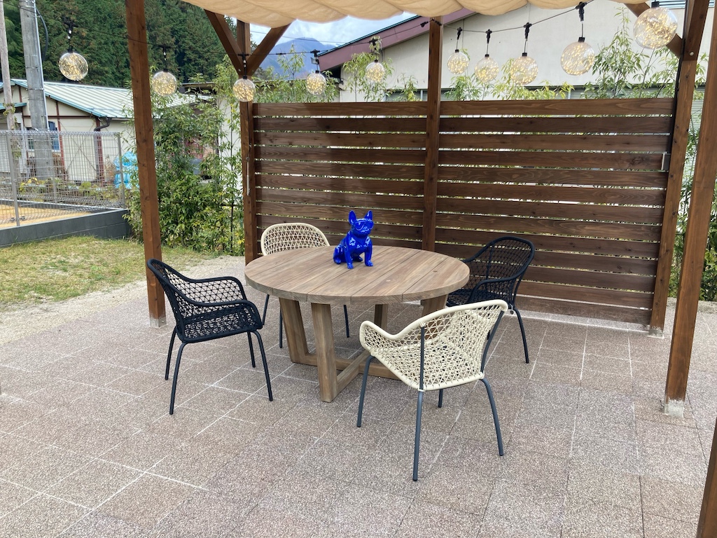 今回は、ワンちゃんと一緒に食事ができるスペースに、 オランダの屋外・屋内用家具ブランド「Woven +」のテーブルと椅子を選んでいただきました。