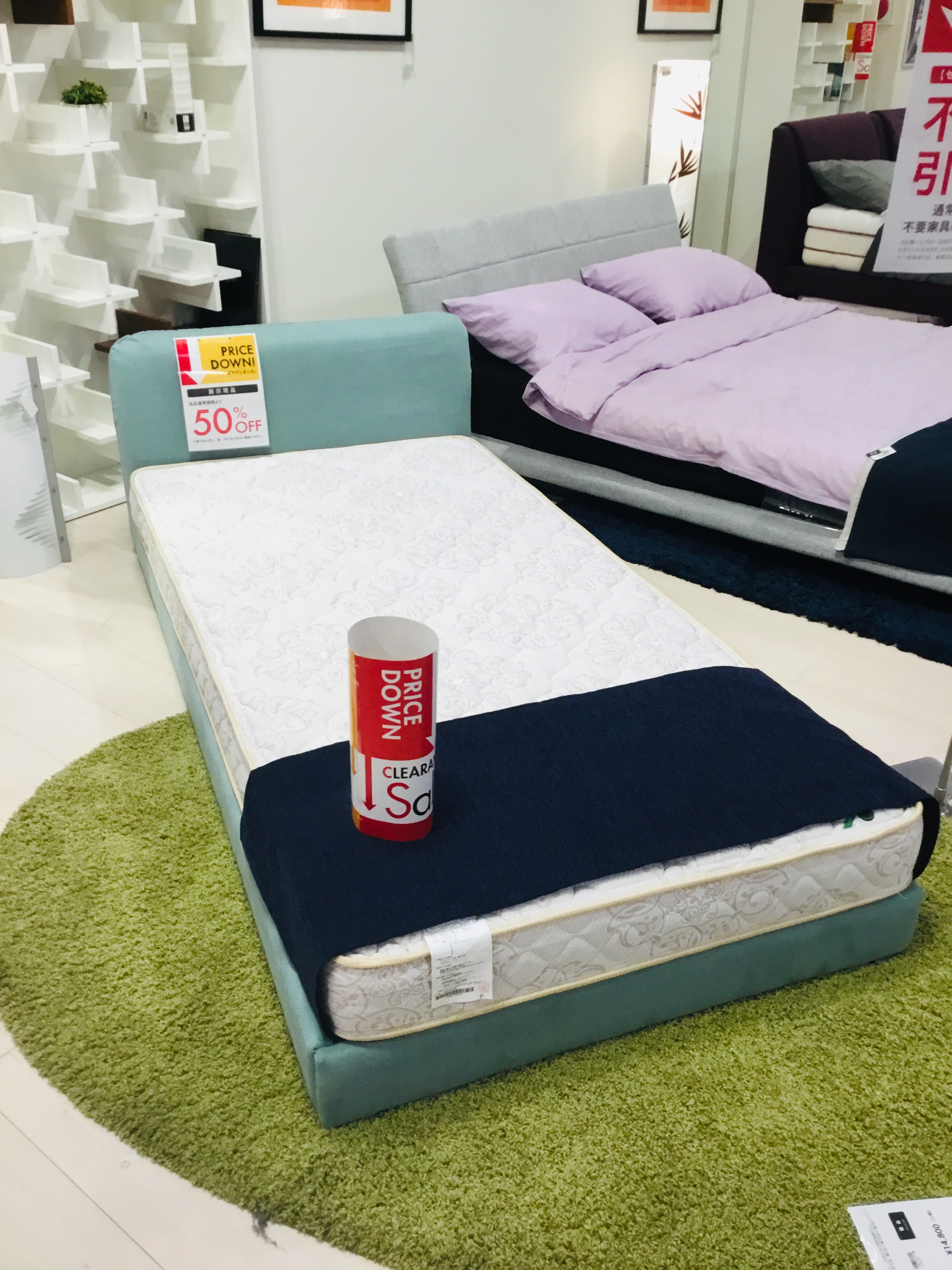 ベッドフレーム+マットレス¥140,000(+税)が展示現品50%です。