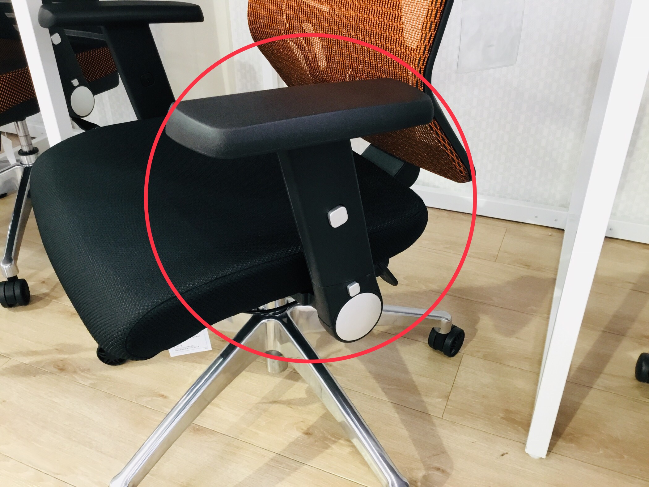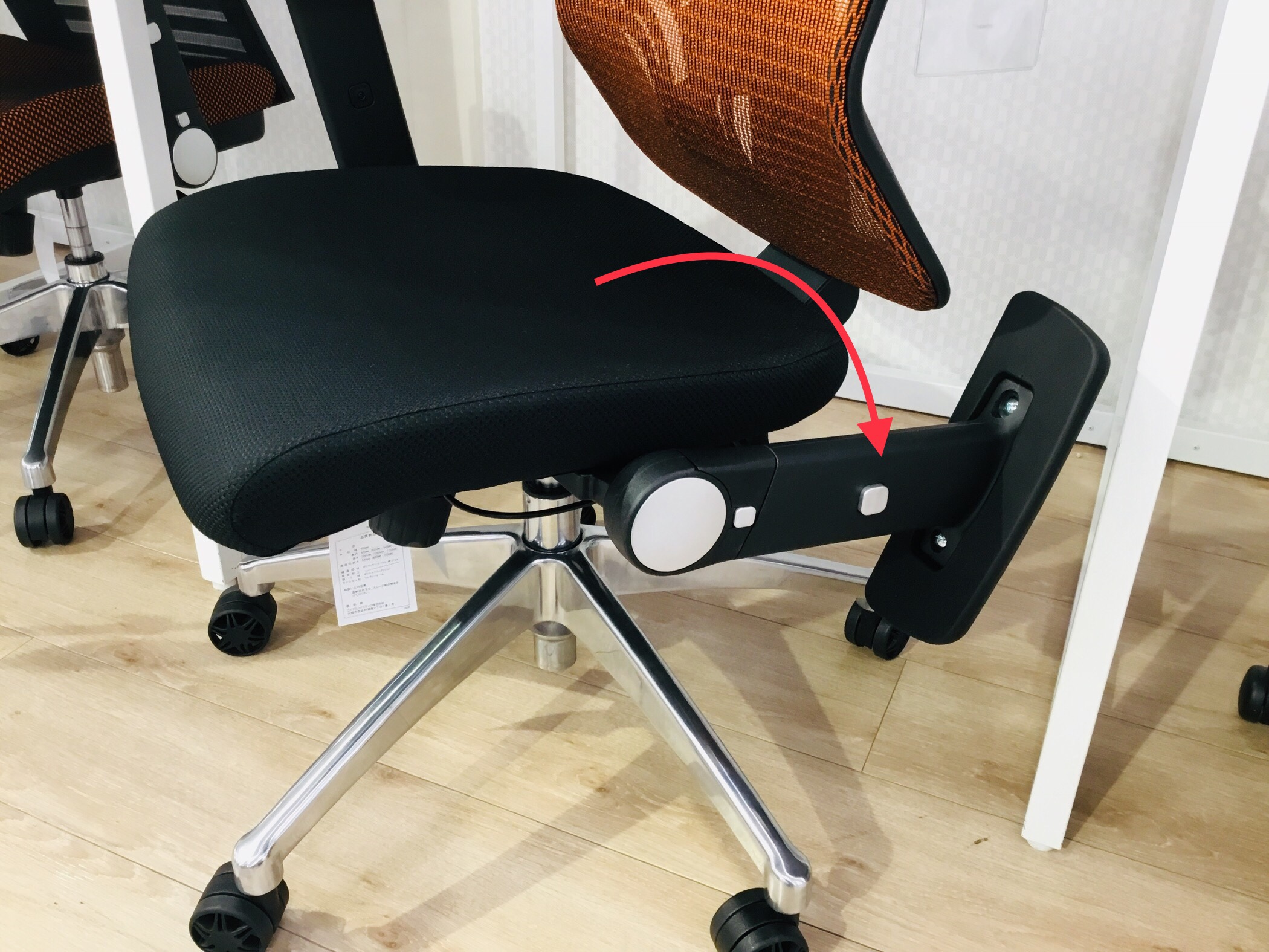 またアーム部分は収納可能な為、アーム部分が引っかかってデスクの下に椅子がしまえない場合にも対応可能です。