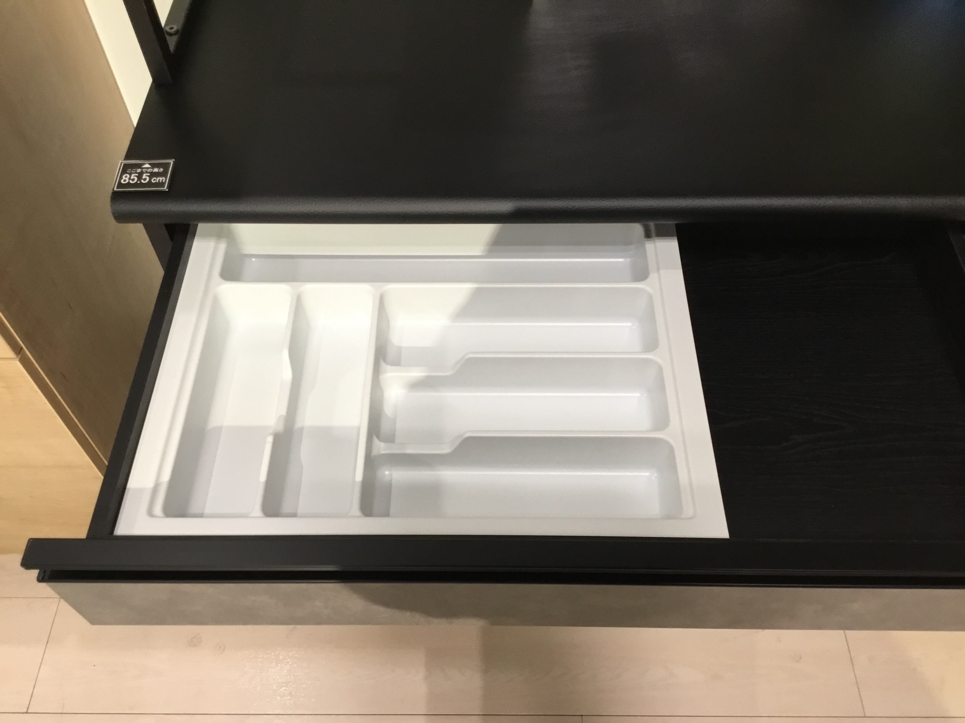 さらにお箸やスプーンなどの収納に便利なカトラリートレーつき!