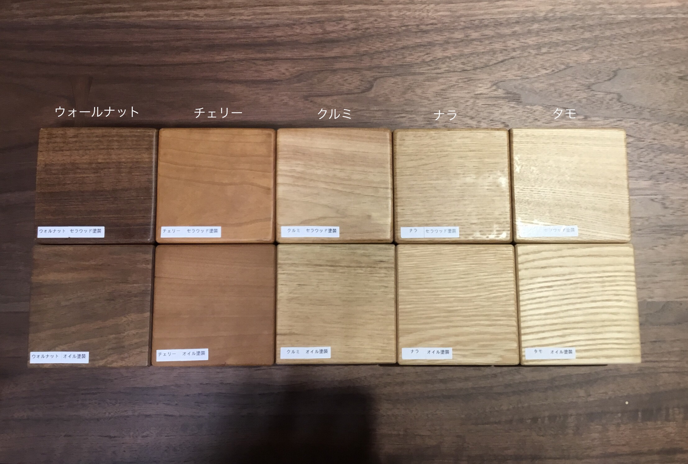 材種はタモ・クルミ・ナラ・チェリー・ウォールナットの5材種から選べます。