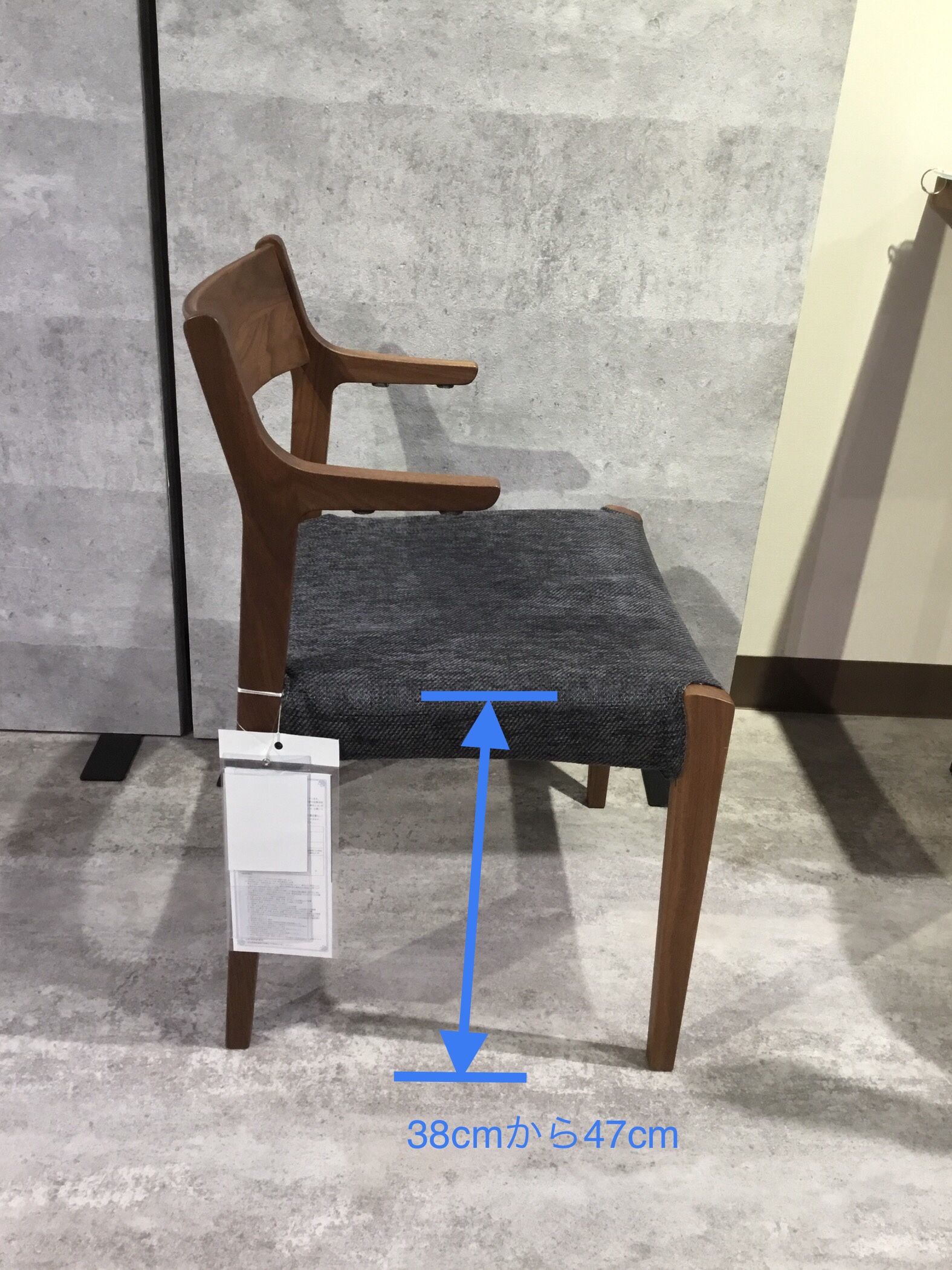 座面の高さが38cmから47cmまで1cm刻みでオーダー可能です。