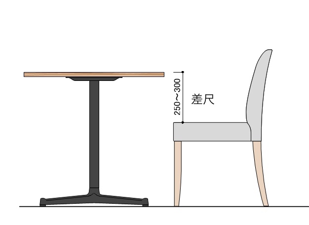 『差尺』とは、テーブルの高さとイスの座面の高さ(シートハイ)の差のことです!