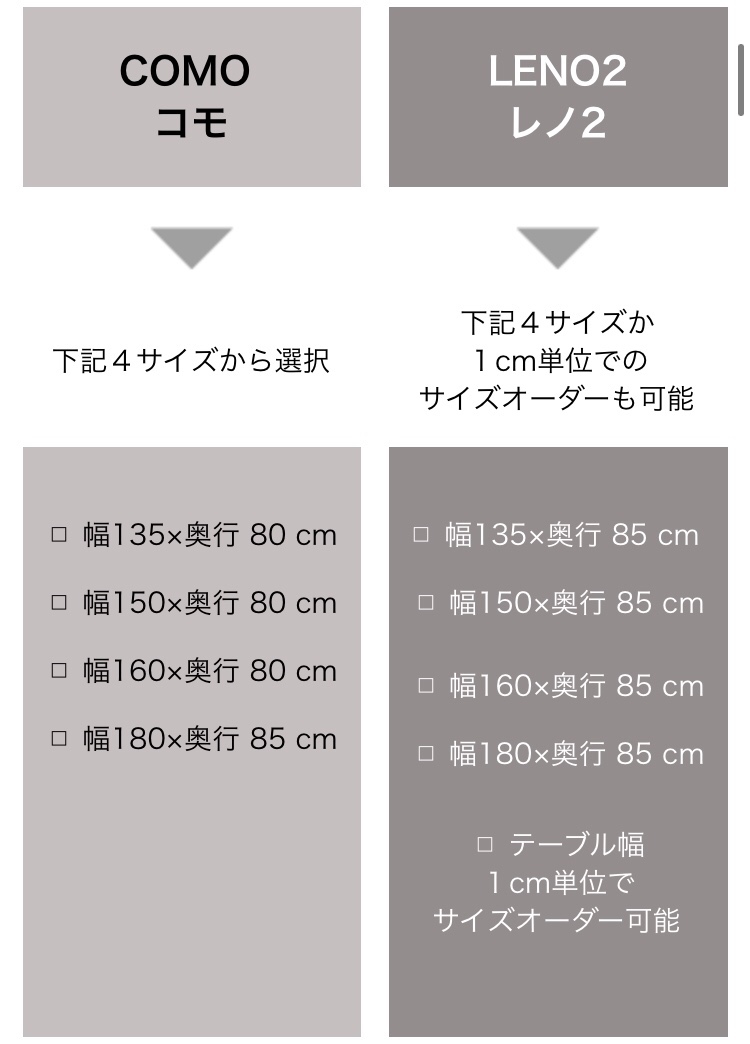 4サイズより。レノは1cmきざみでサイズオーダー可能です。