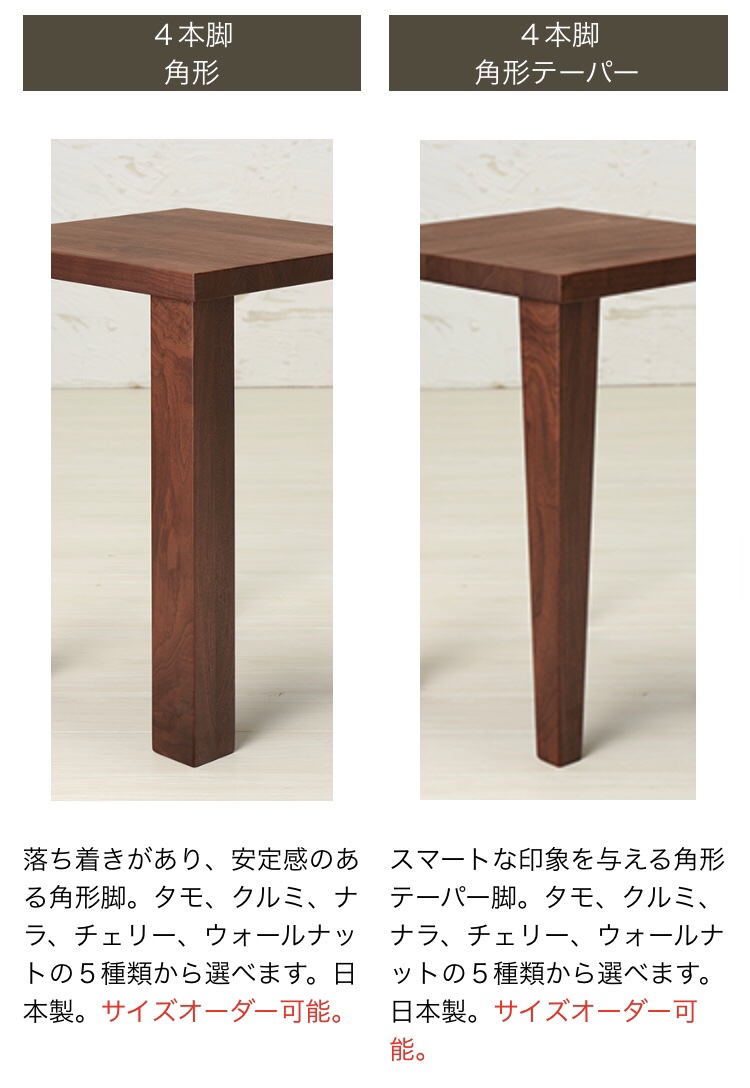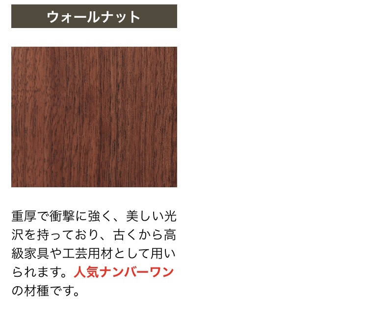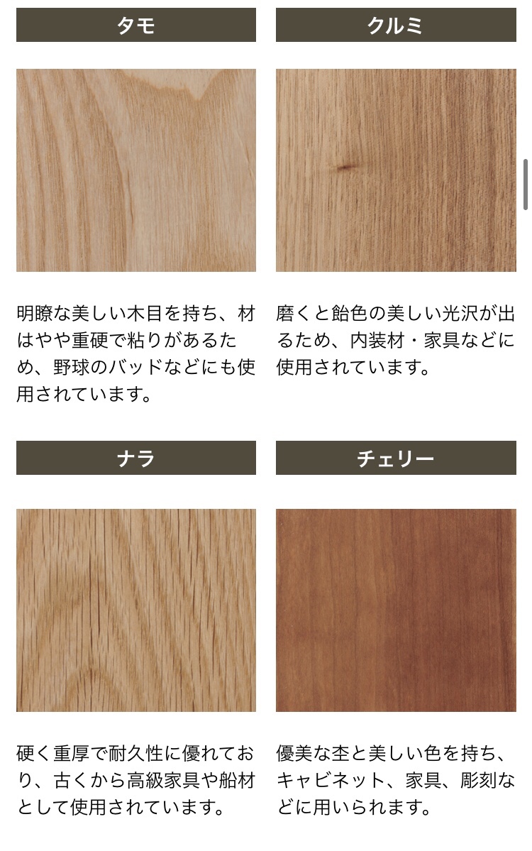タモ、クルミ、ナラ、チェリー、ウォールナットより選べます。