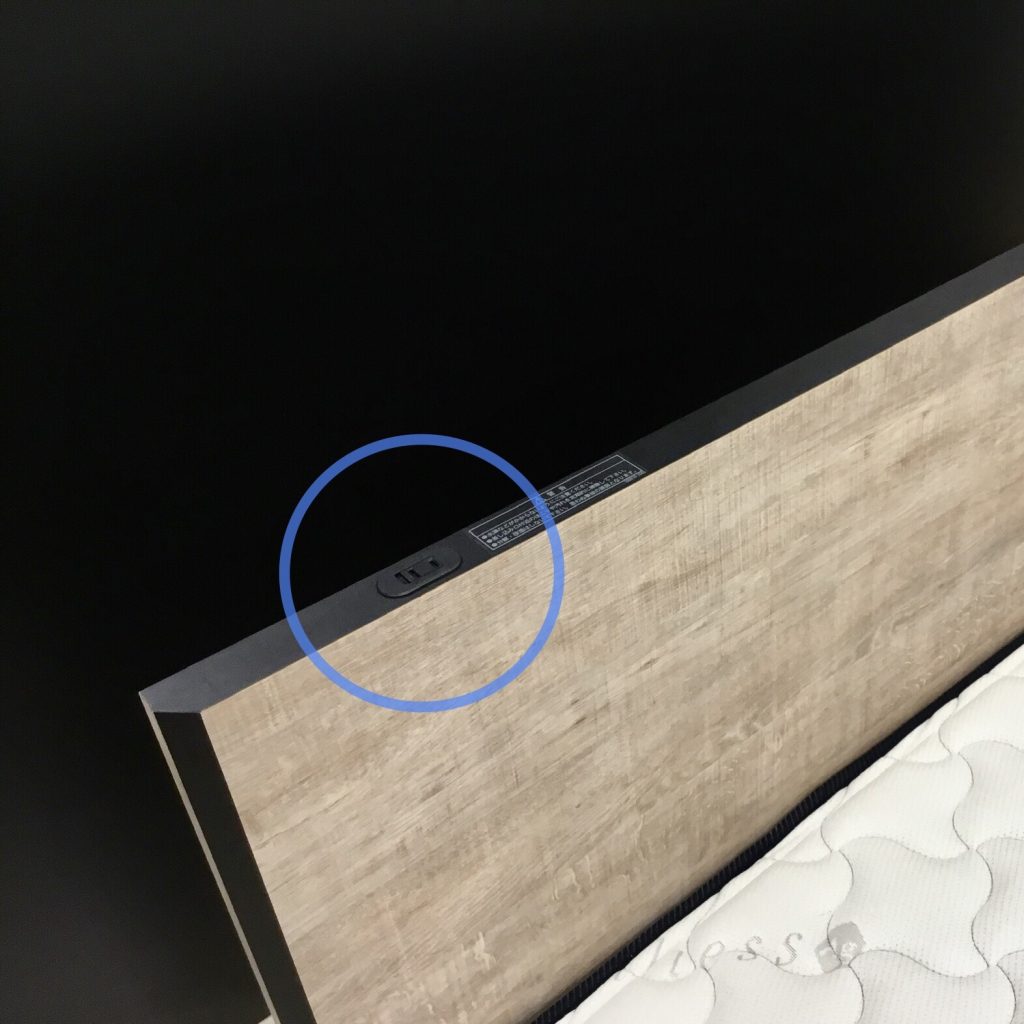 フラットなヘッドボードにコンセントが付いたシンプルで機能的なフレームです。