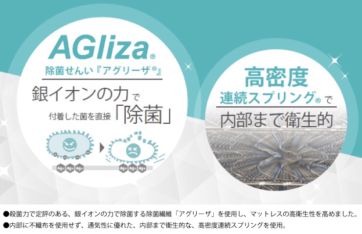 除菌機能糸を使用することでを付着した菌を直接除菌してくれるマットレスです。