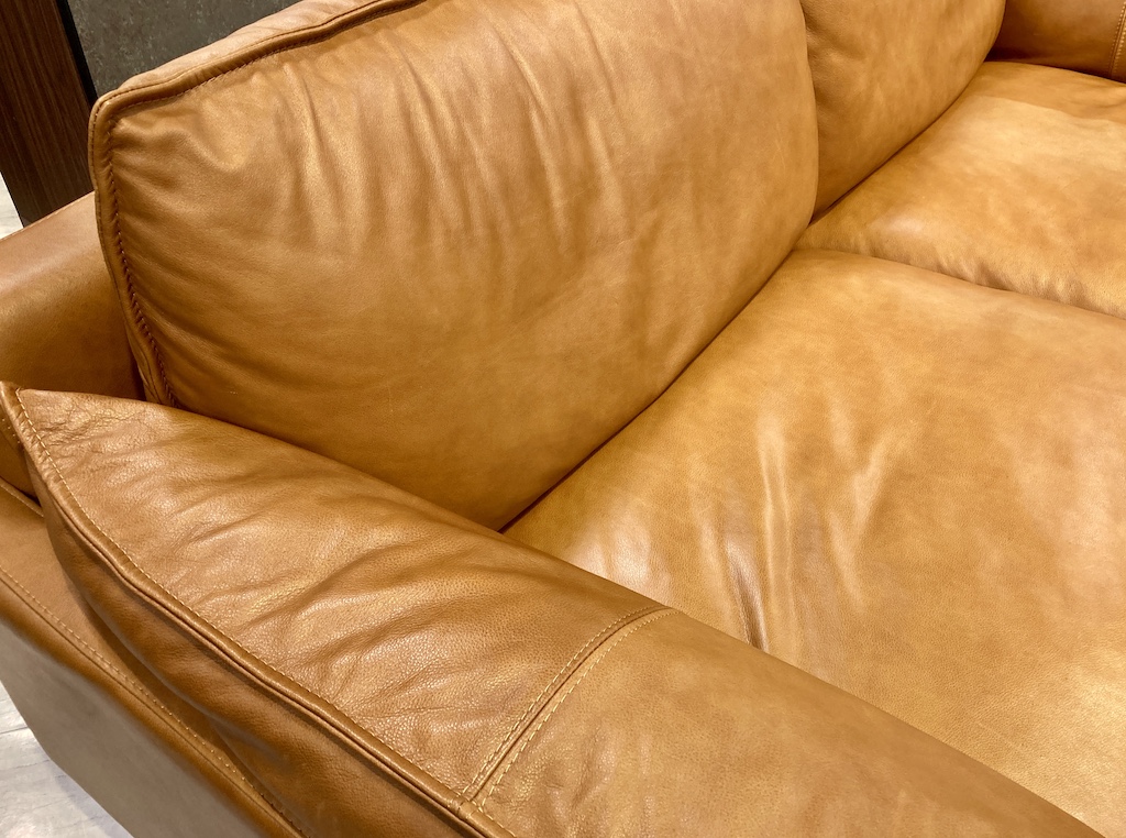 まるで革のジャケットを着ているよう!?包み込まれるような座り心地の総革張りソファ