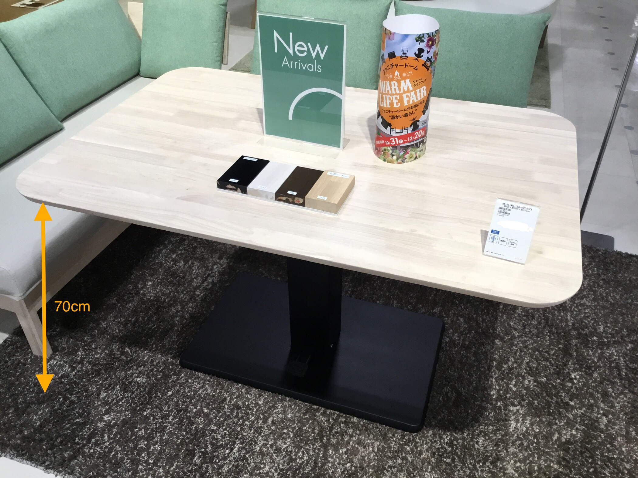 テーブルは高さ55cmから70cmまでの昇降式なので、自由に高さを変えられます。