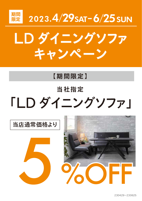 ただいま、ファニチャードーム本店では、リビングダイニング用ソファが5%オフになるお得なキャンペーンをおこなっています。