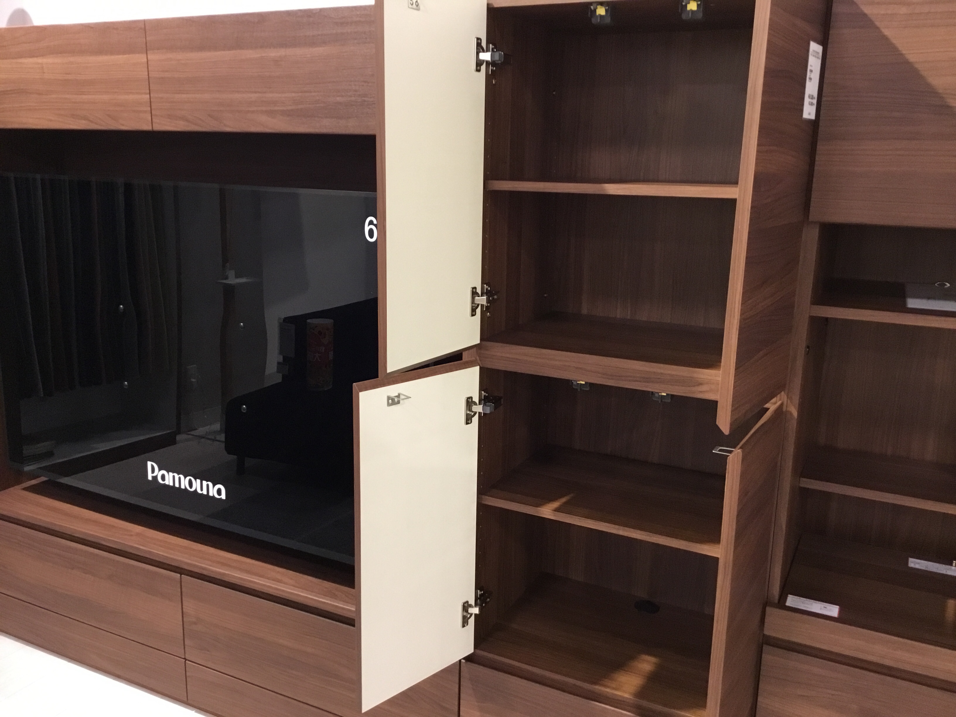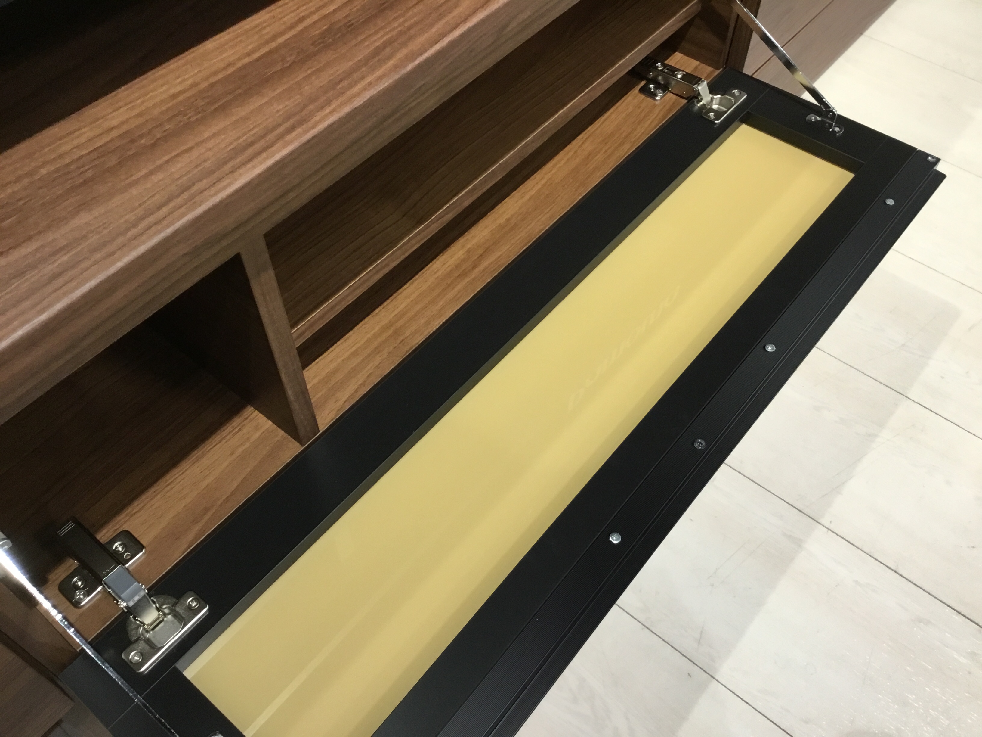 ローボード部分は扉裏面がガラス仕様になっていますので、扉を閉めたままリモコン操作が可能です。