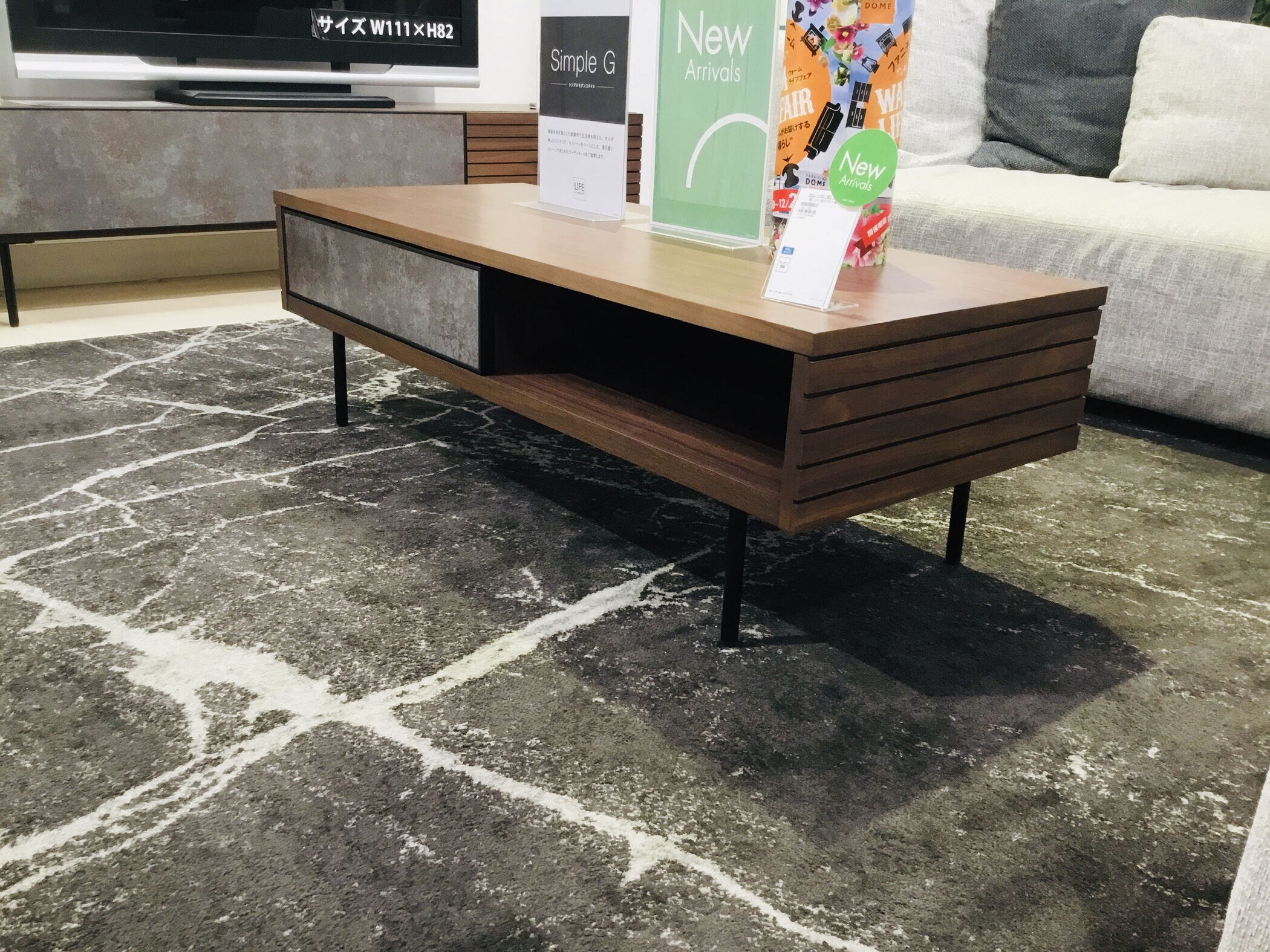 天然木×アイアン脚のモダンなテレビ台とリビングテーブルのご紹介です。