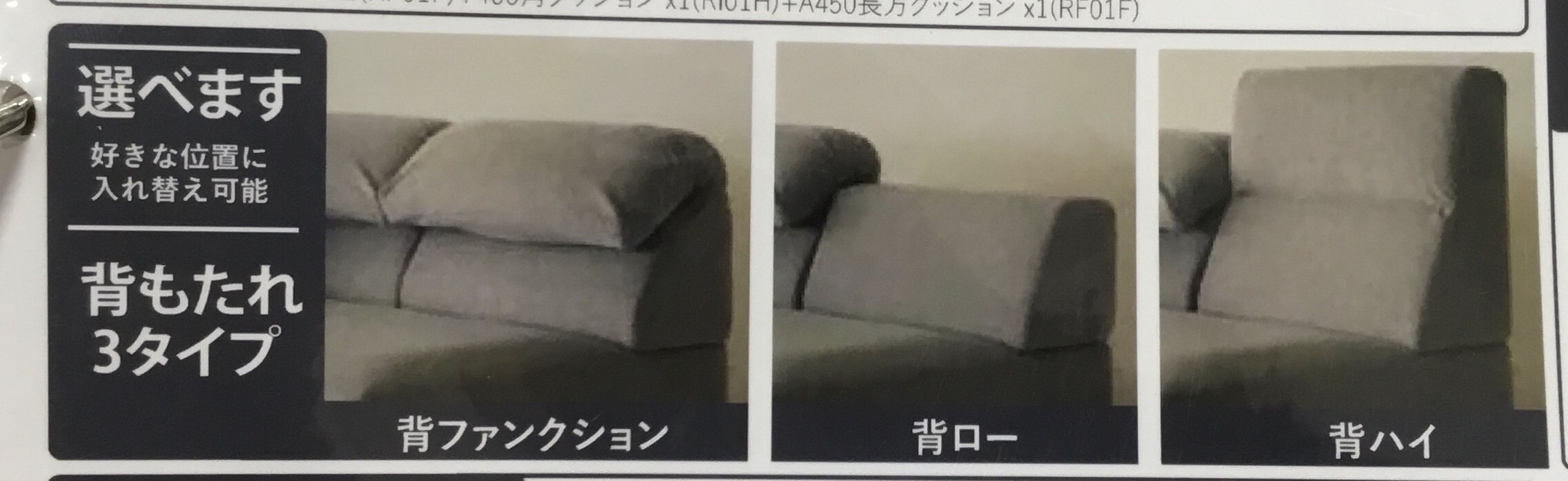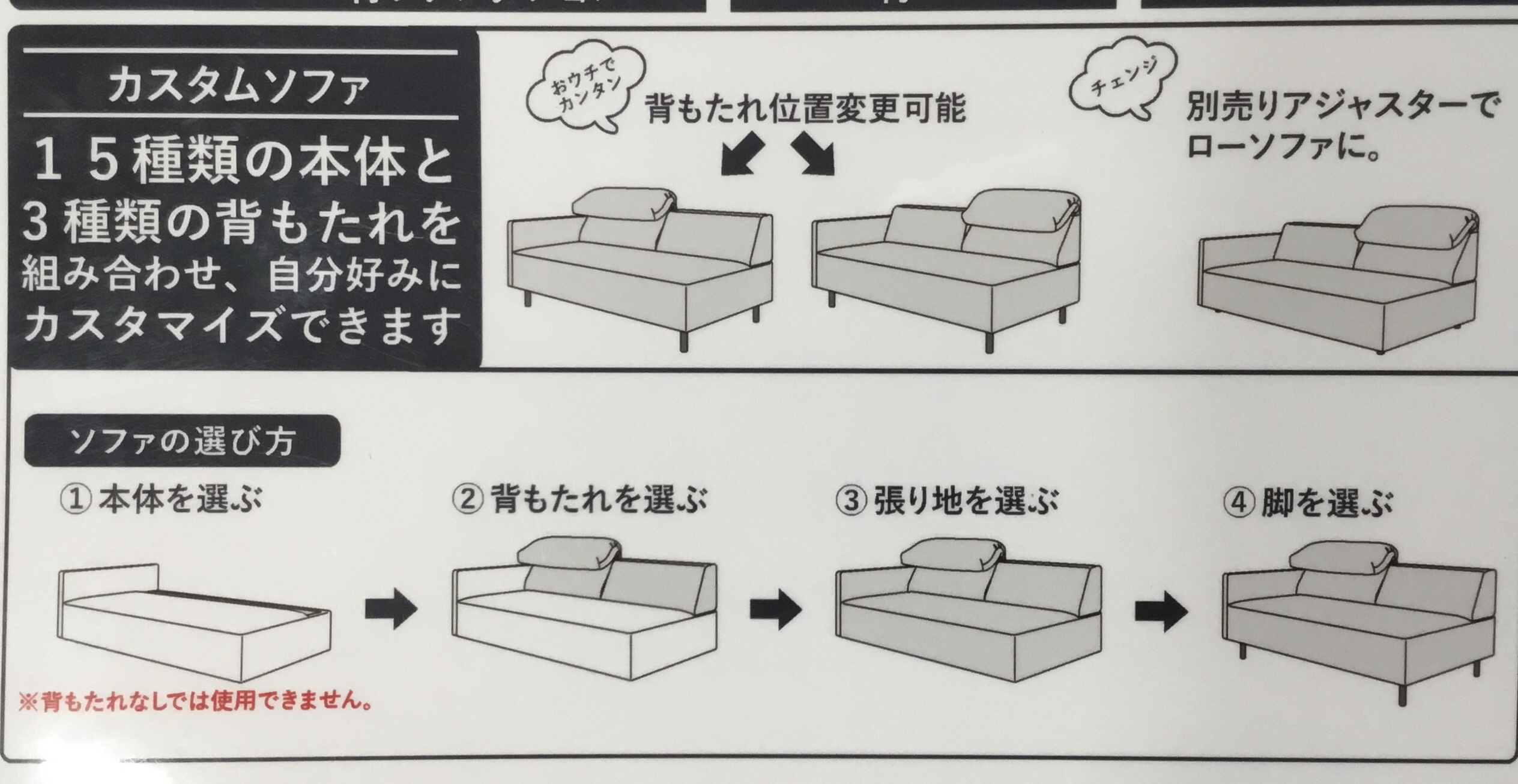 こちらのソファは15種類のベースと3種類の背もたれから組み合わせが可能であう。