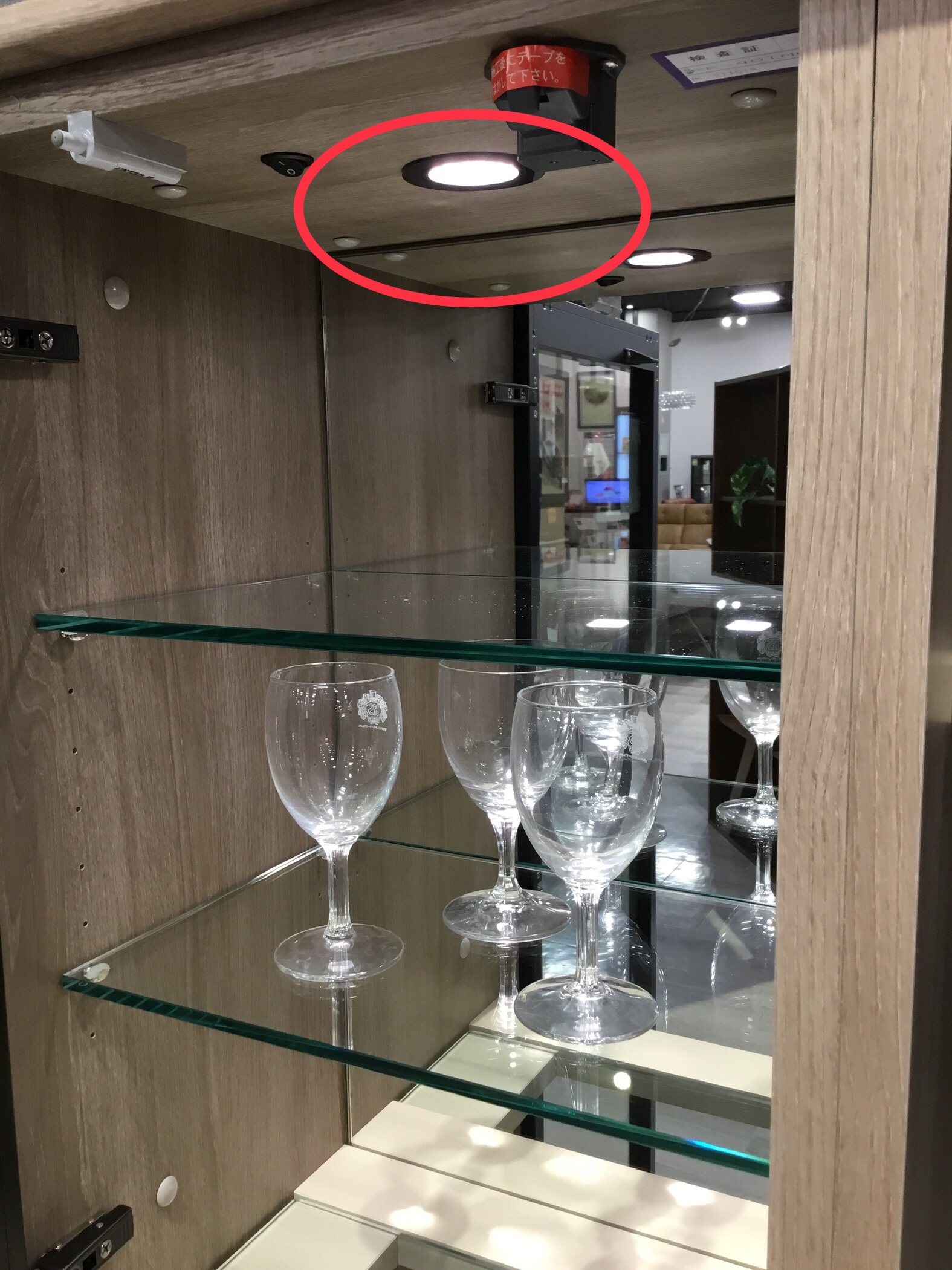 またガラス扉の上には、ライトも付いているので飾り棚としてかっこよく飾っていただけます。