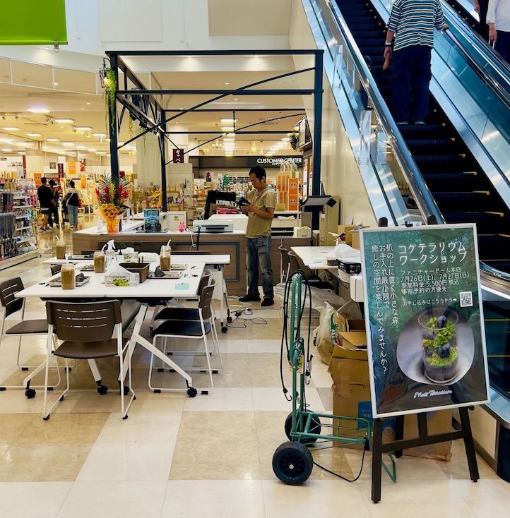 7月26日(土)・27日(日)の2日間限で苔テラリウムづくり体験ワークショップを開催しました。多くの方に参加していただき、楽しいワークショップになりました。苔にはたくさんの種類があるので、次の機会には、今回とは違った新しい苔を使った苔テラリウムワークショップの開催を是非よろしくお願いします!!
