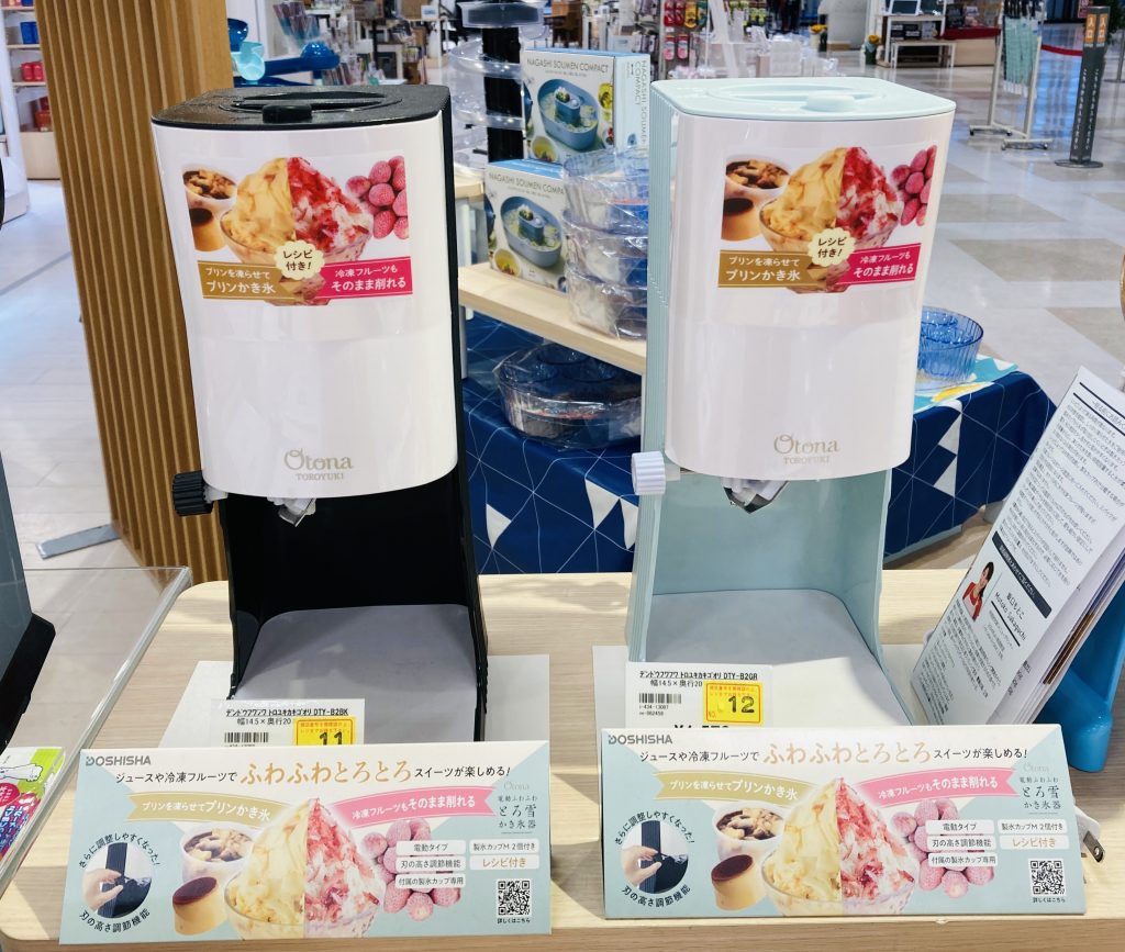 店頭にはいろんな種類のかき氷器やカラフルなボウルなどもご用意しております。
