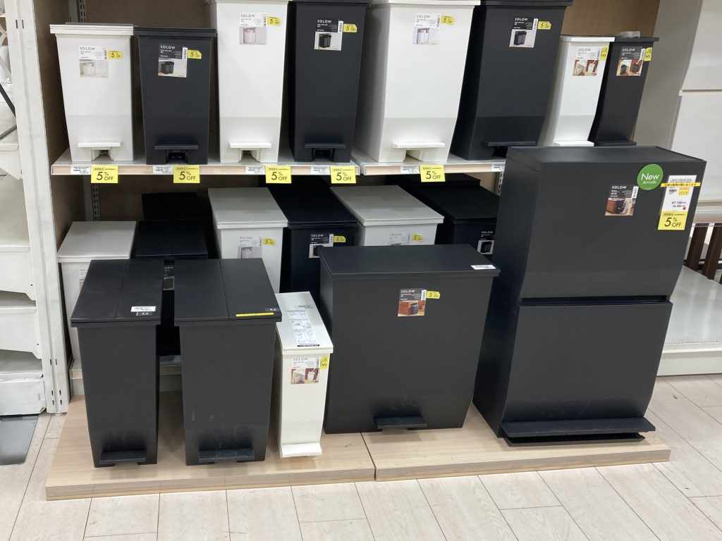 キッチンはもちろんリビングなど通路に置いても動線の邪魔にならないのが魅力的なゴミ箱です