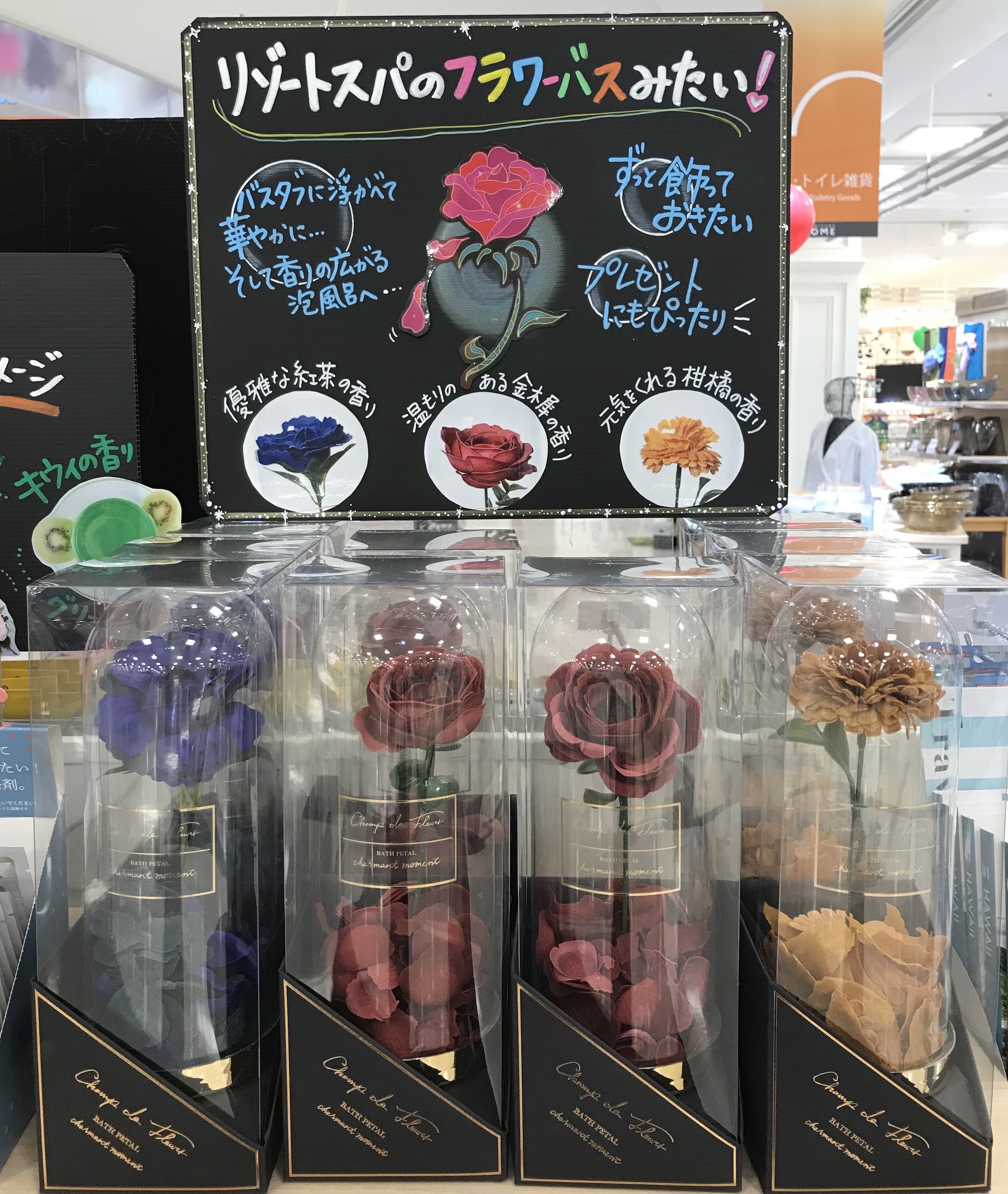 香りは左から紅茶・金木犀・柑橘の3タイプのバスペタル
