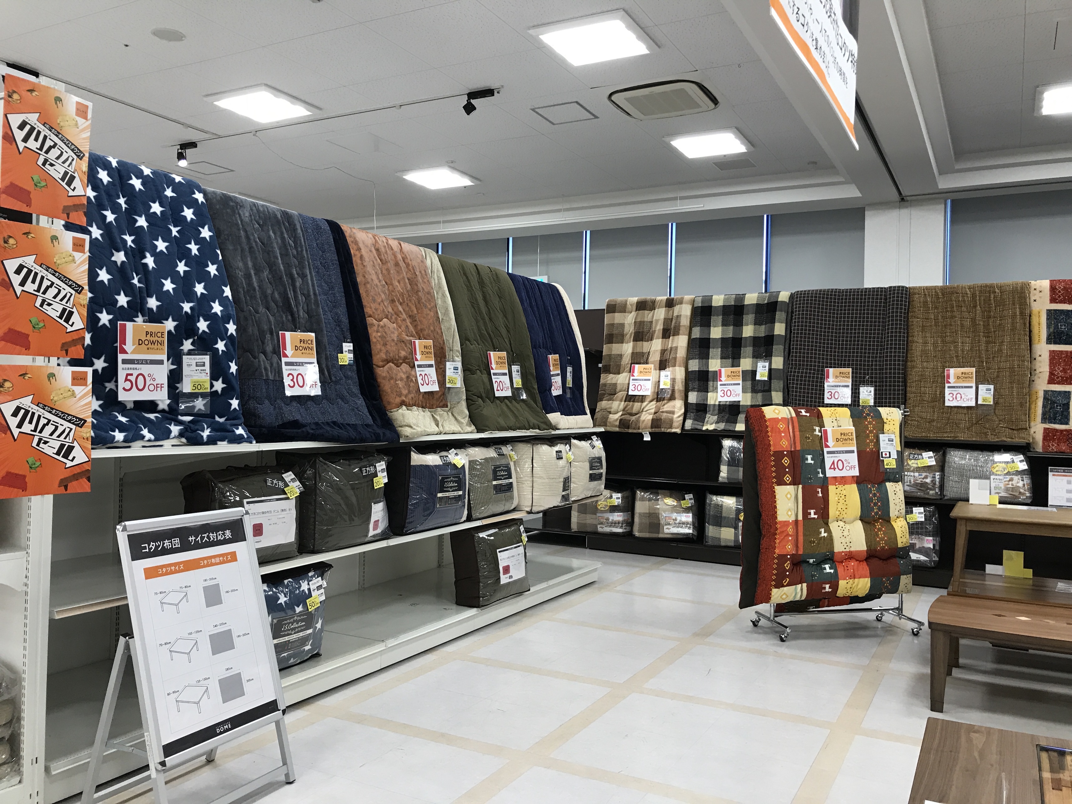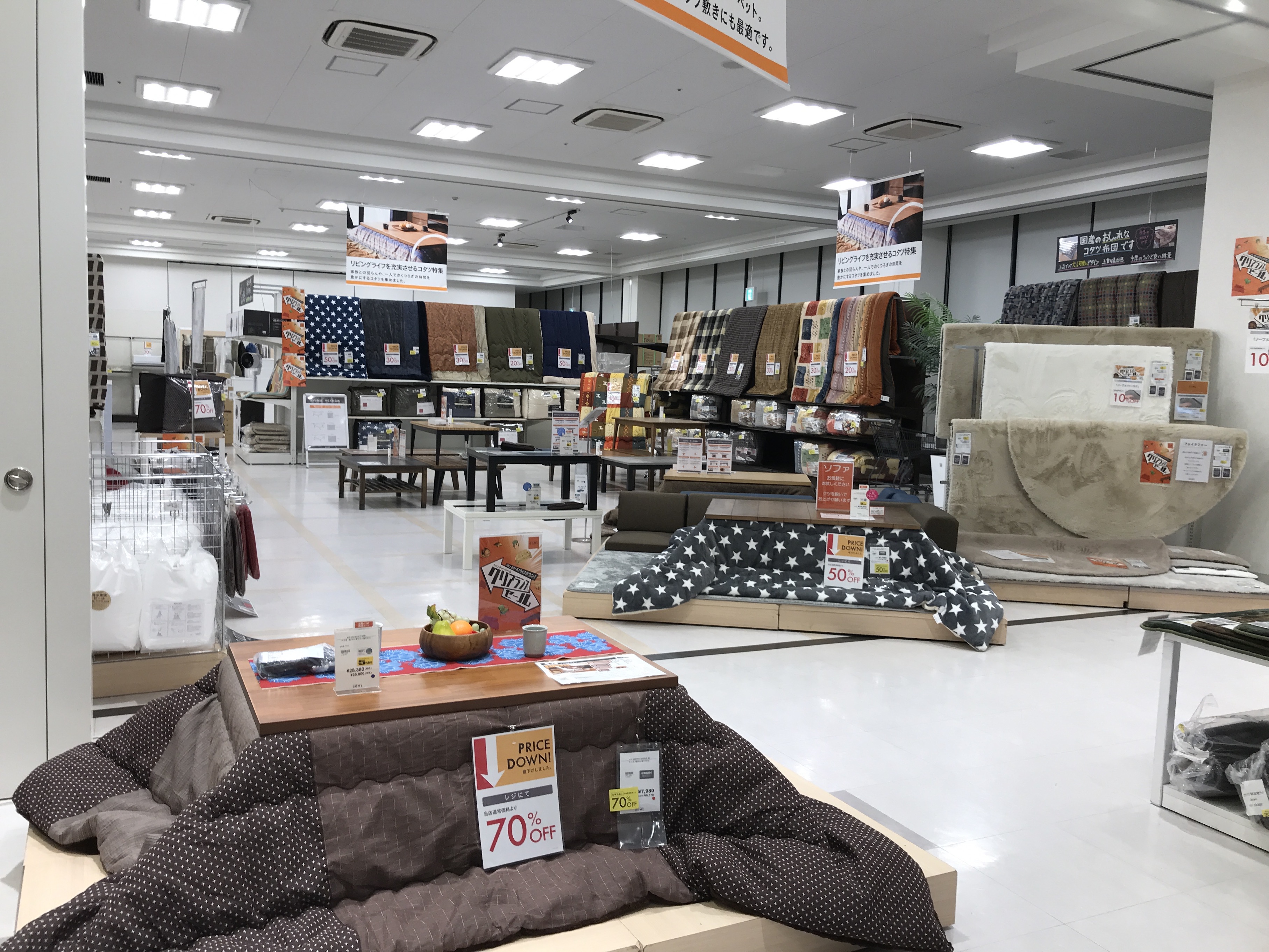 こたつ布団は全品処分価格で販売中です。