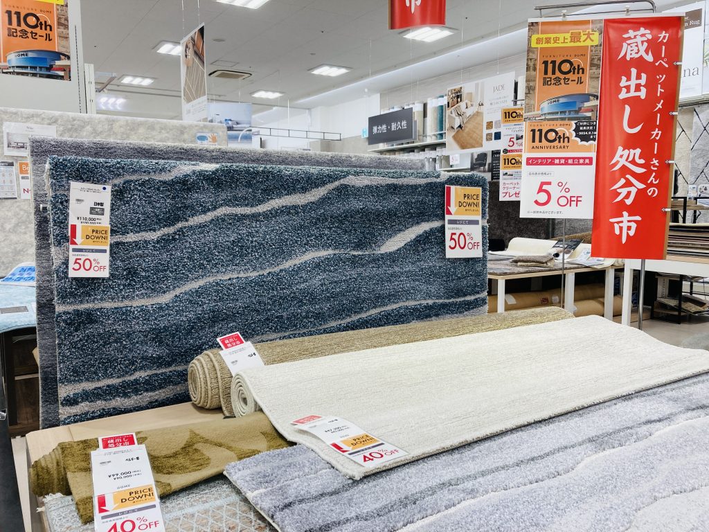 創業110周年記念としてカーペットメーカーさんの蔵出し処分市