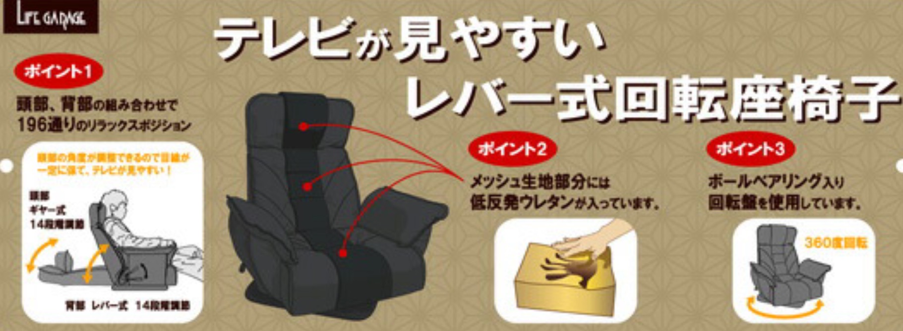 196通りの組合せきるのでお好みのリクライニングを見つけてください!