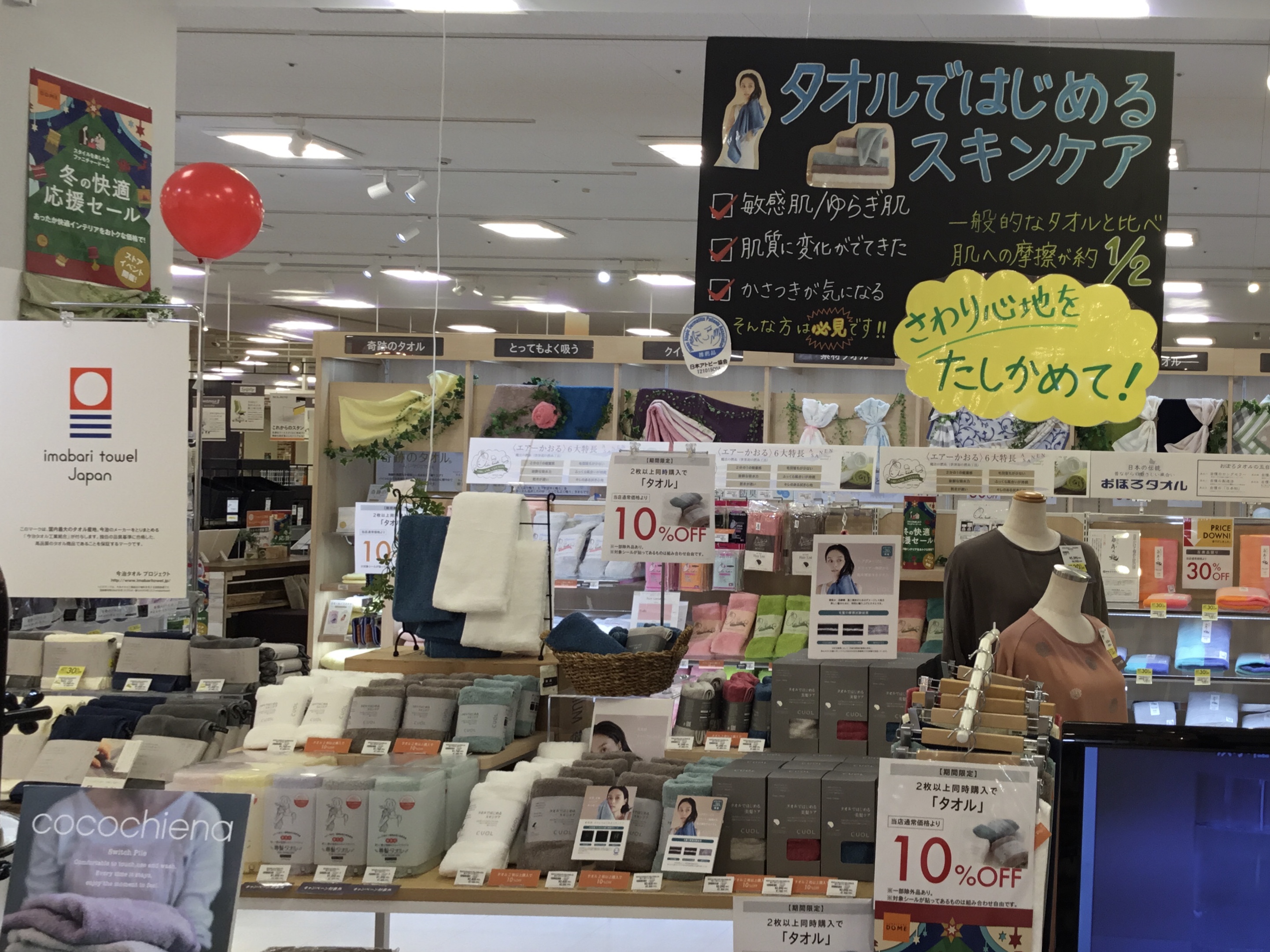 お買い得の商品や30%OFF〜のタオルもまだまだあります。在庫品限りなのでお早めにご来店ください。