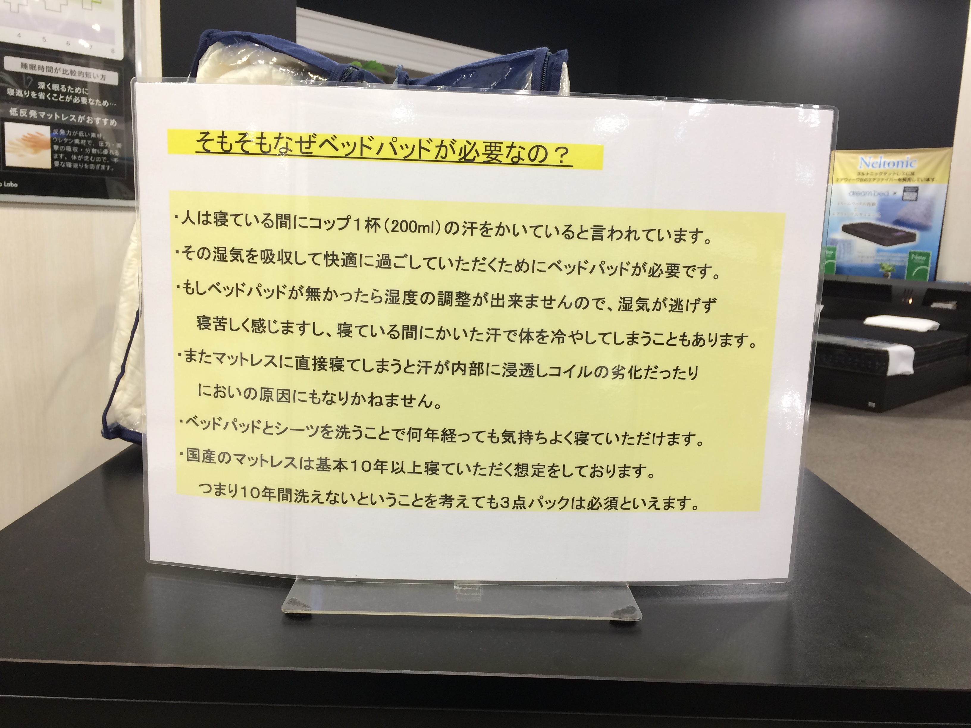 マットレスには必ずベッドパットとシーツをご利用くださいね。