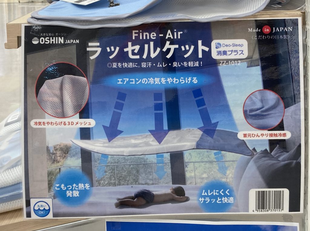 首元はひんやり接触冷感ニット生地、からだ部分はハニカムメッシュ生地の涼しい通気ケットです。